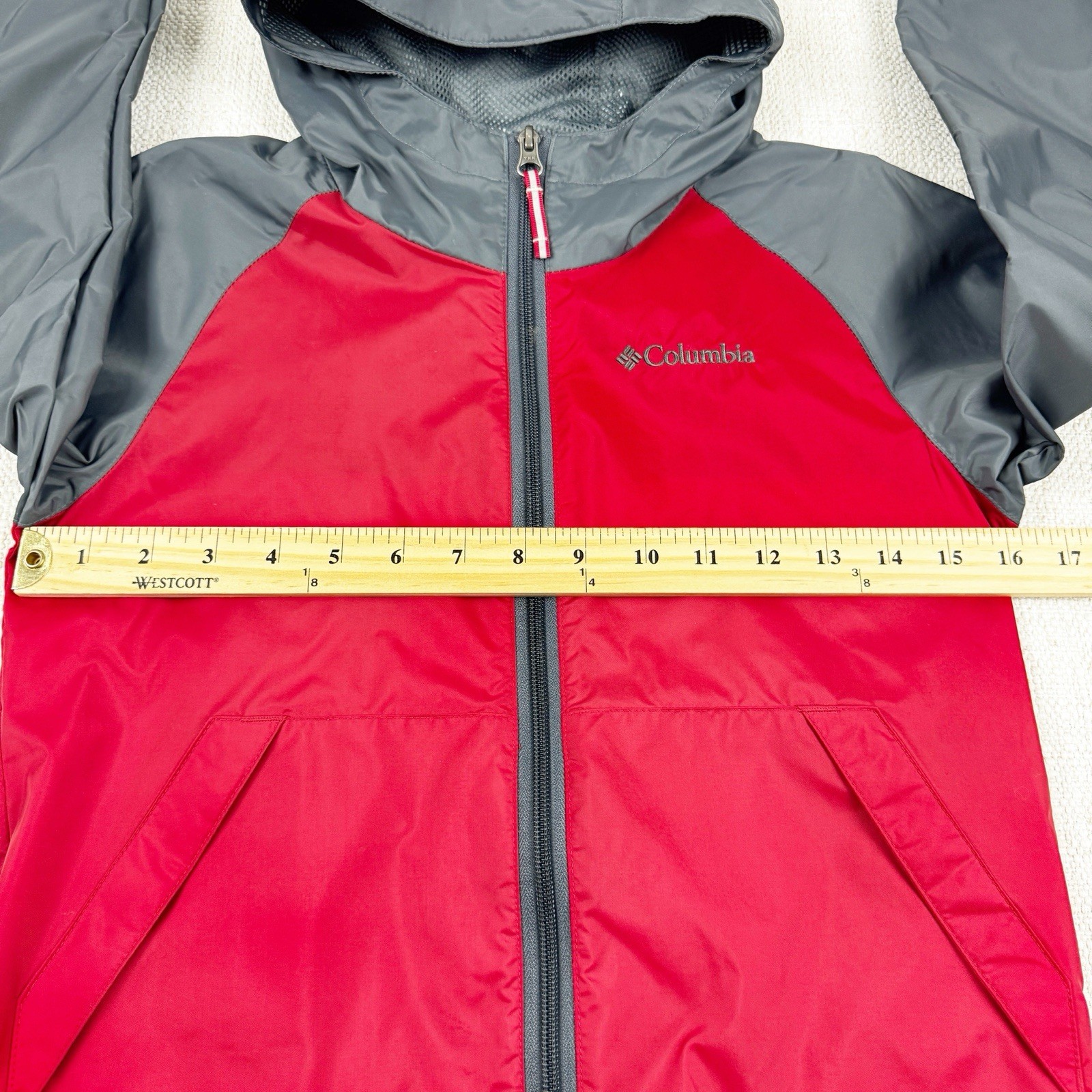 Columbia Kids Rain Jacket Youth Small 8 Hooded Lightweight Nylon Red Gray Mesh