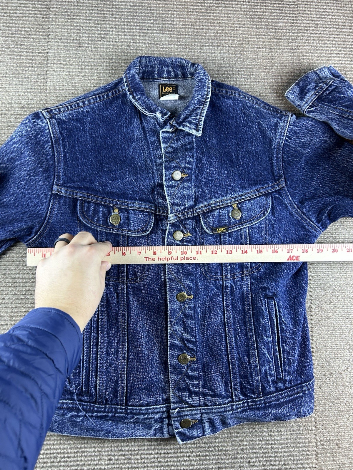 как выглядит Vintage Lee Rider Denim Blue Jean Jacket Student Youth Size 18 Acid Wash 19x23.5 фото