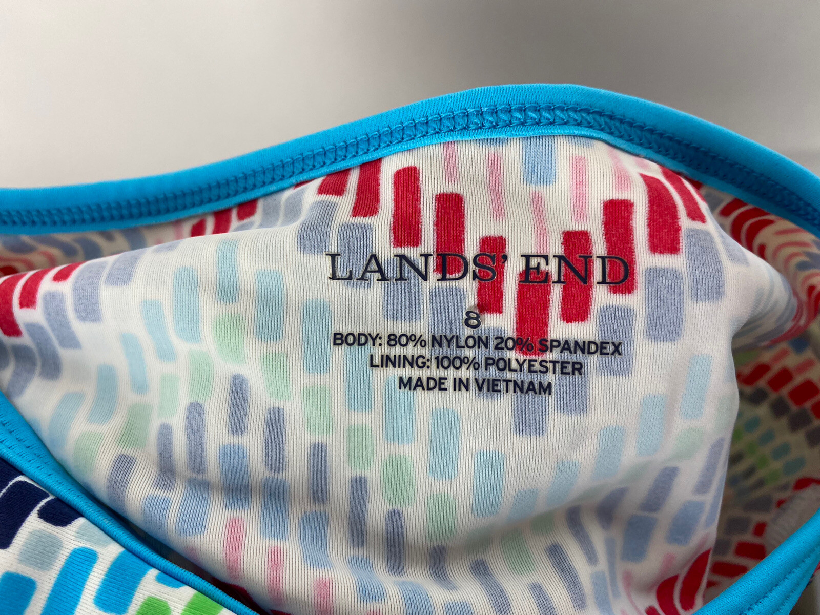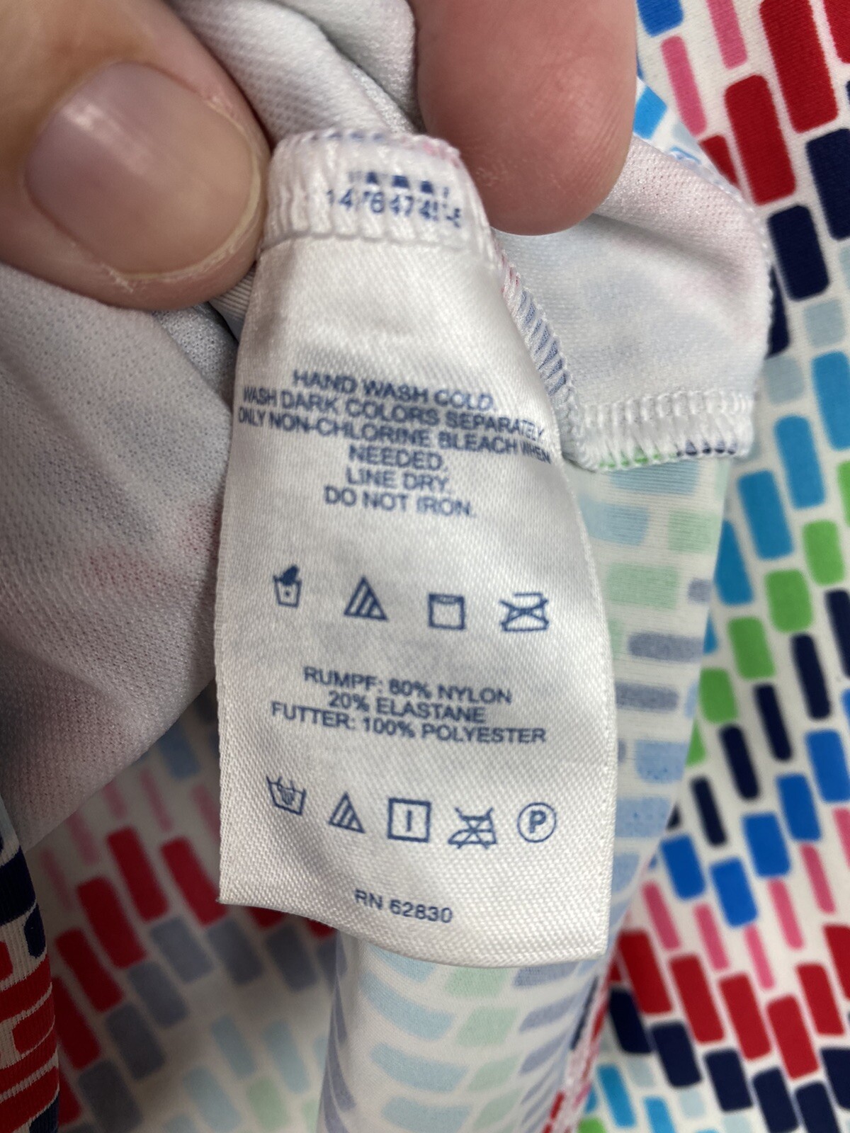Lands End Rash Guard Girls Size 8 Chevron Print Long Sleeve Boat Neck Stretch