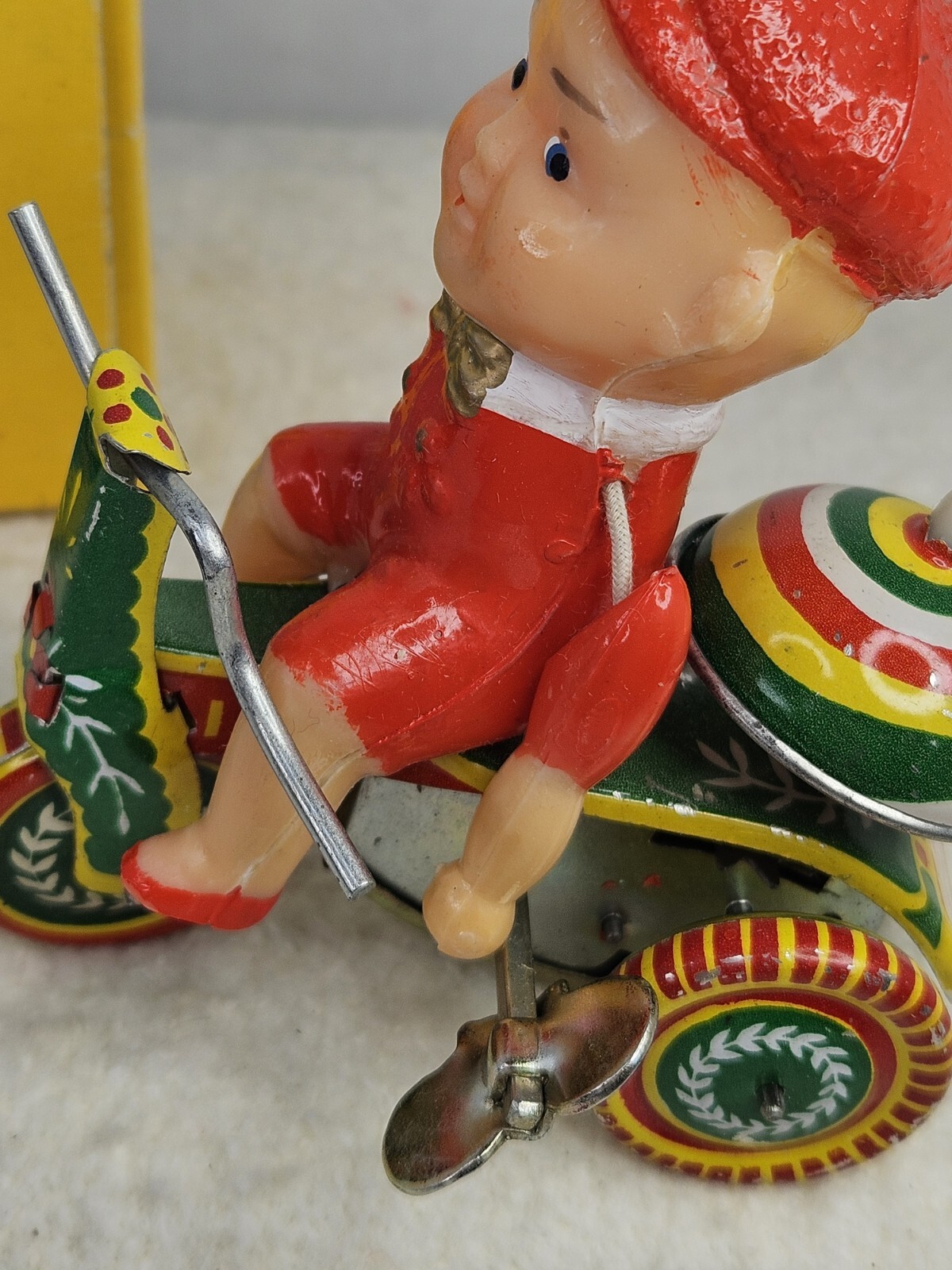 как выглядит Vintage Ringing Tricycle Tin Litho Wind Up Toy with Key orig Box- 261 PS-13 фото