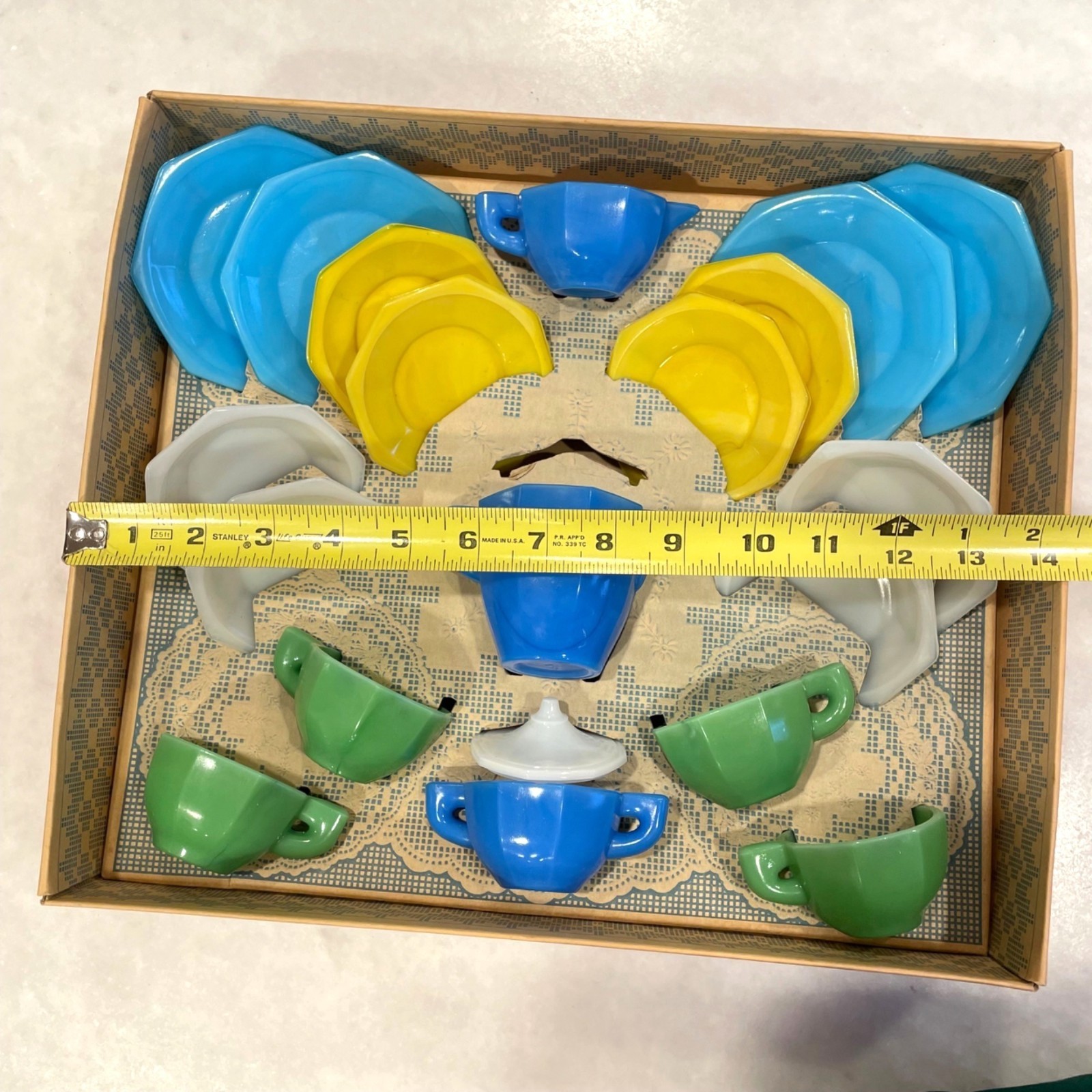 как выглядит Vintage Little American Maid Tea Set Akro Agate w Original Box 20 Pieces No 335 фото