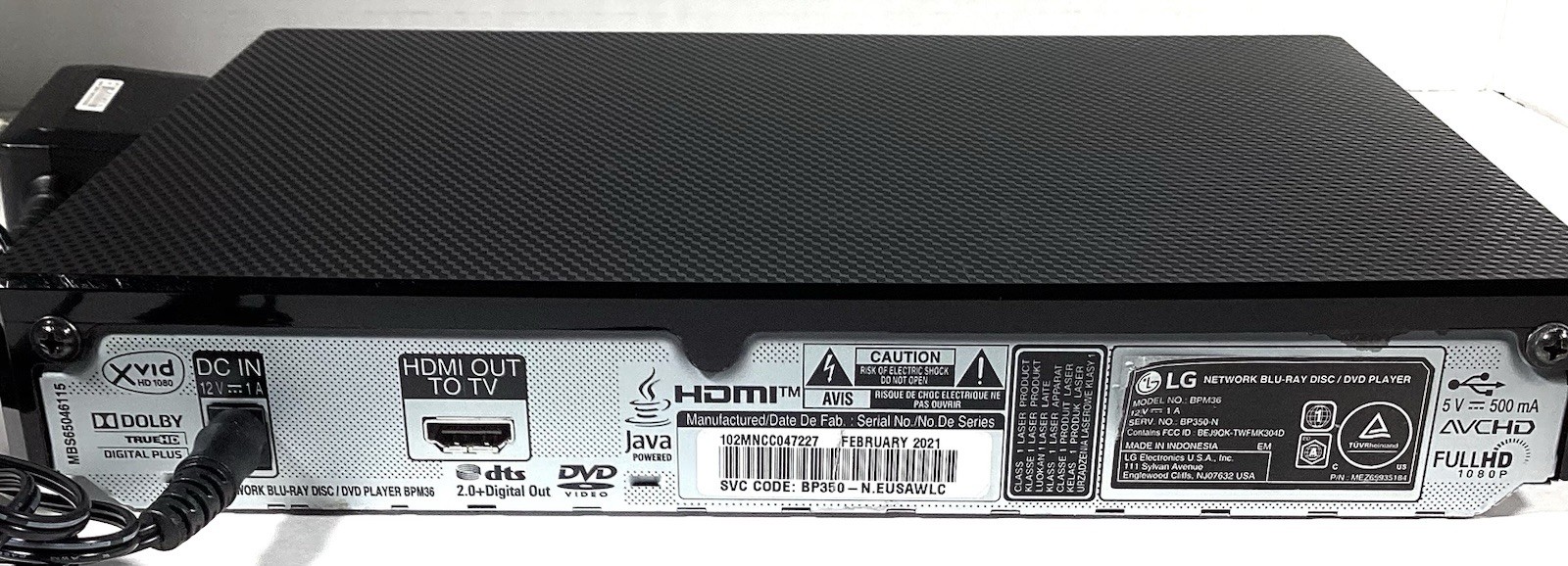 LG BPM36 Blu-Ray Disc / DVD Player w/OEM Remote Tested Excellent Condition