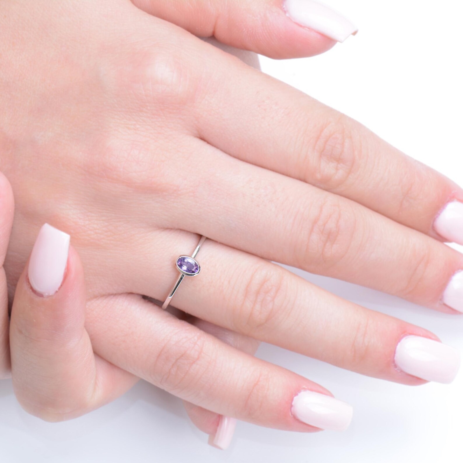 как выглядит Natural Amethyst Wedding Band Oval Cut 925 Sterling Silver Ring Gifts For Her фото