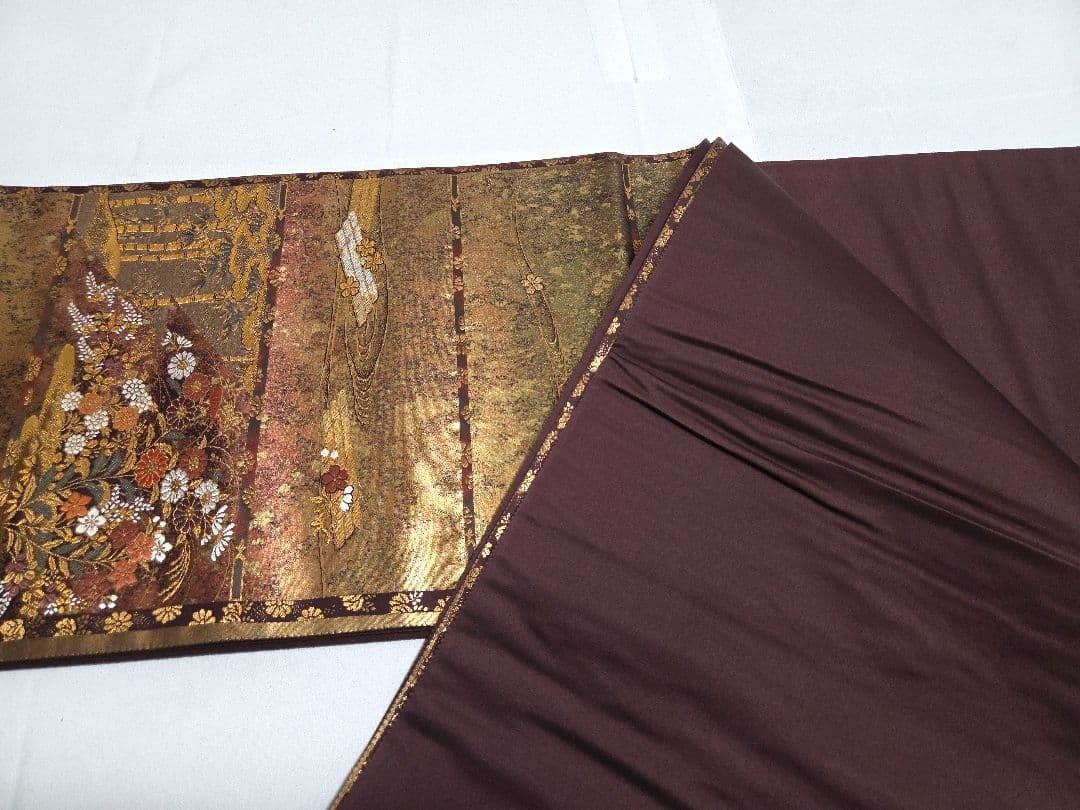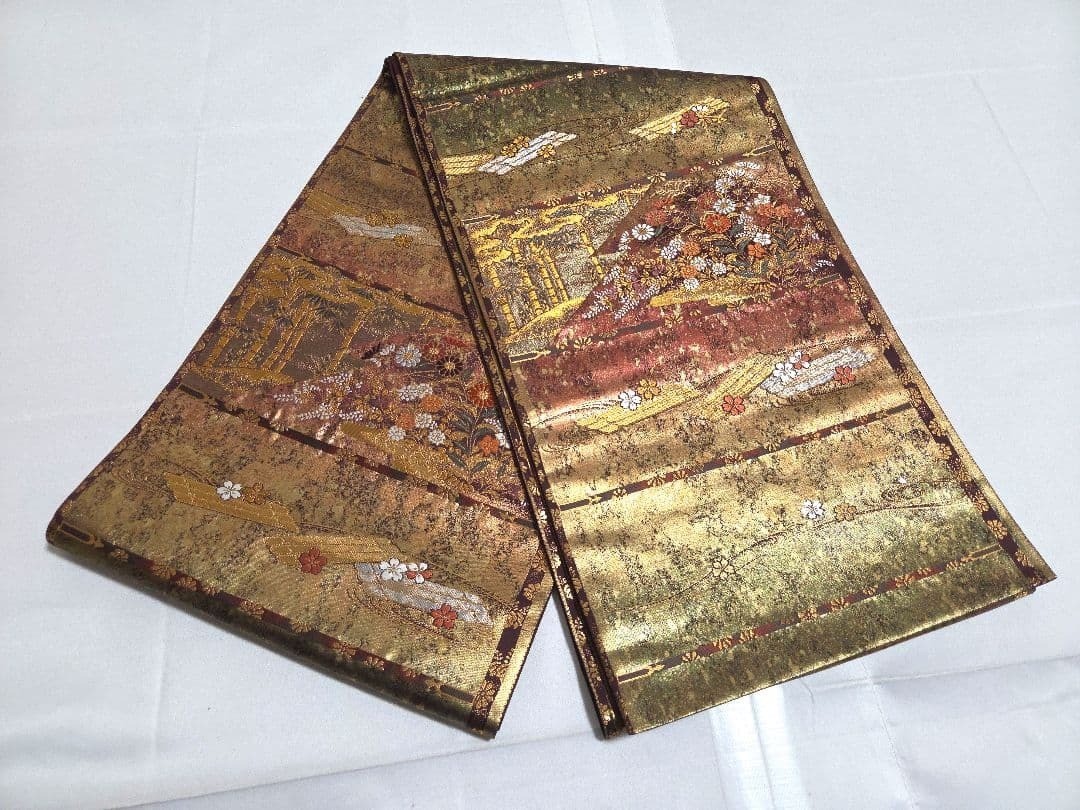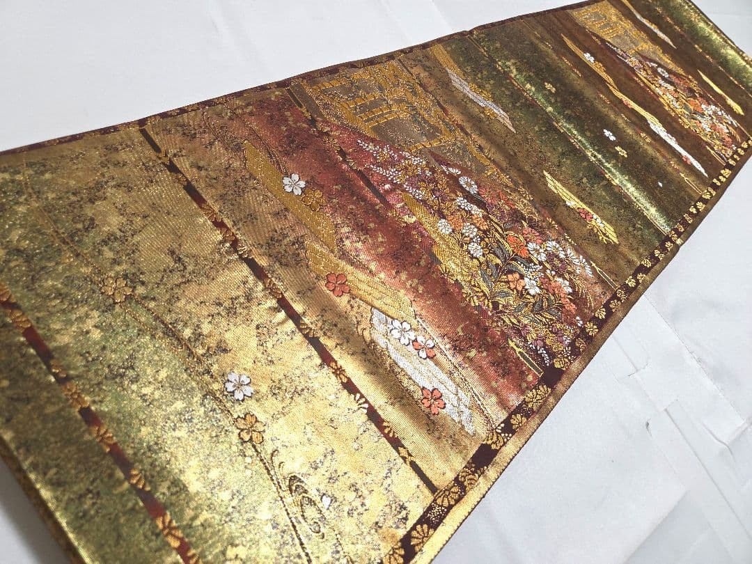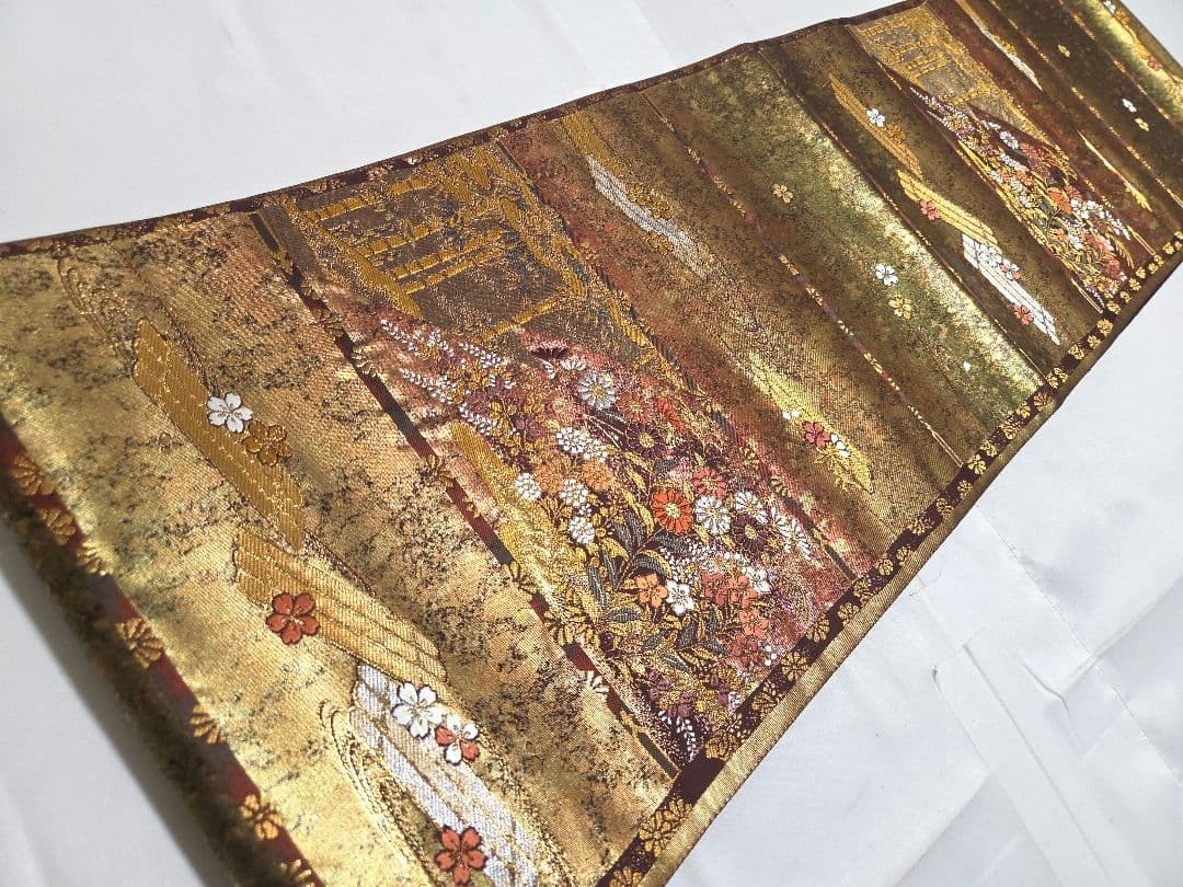 как выглядит Suzunoya Gold Thread Flower Raft Kimono Formal Obi 30.5cm Used Japan фото