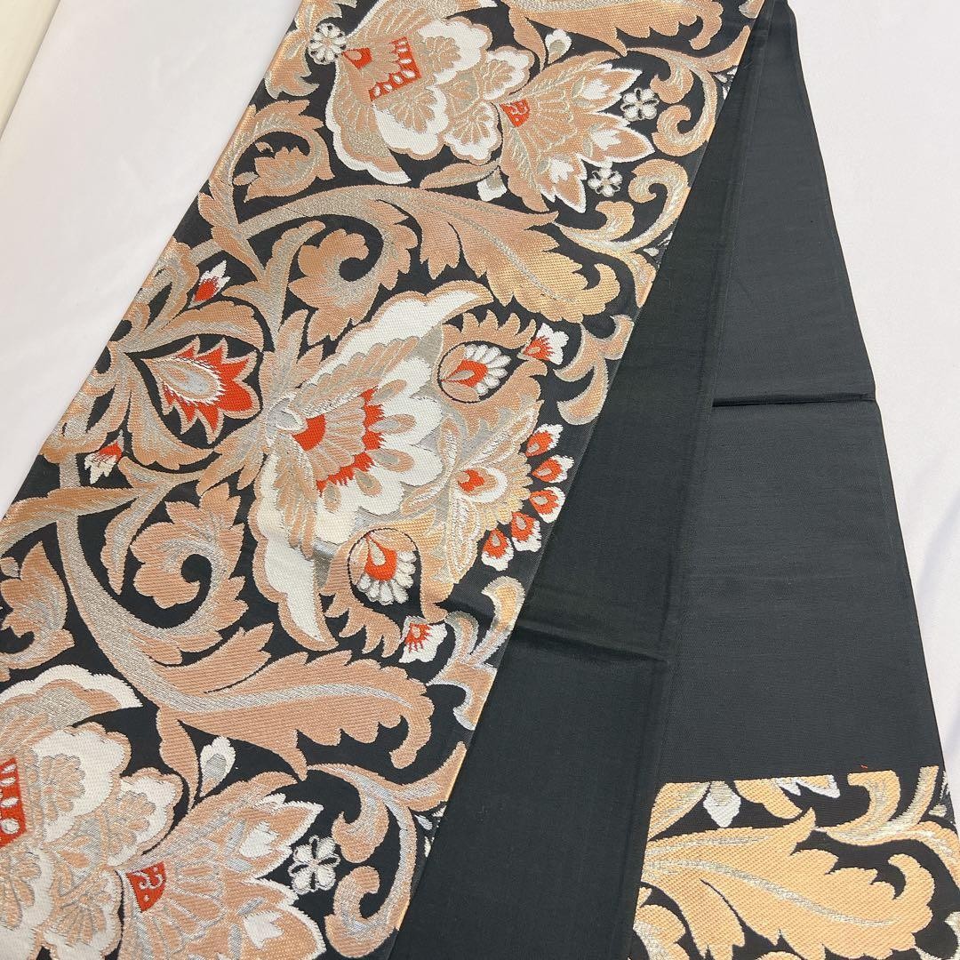 как выглядит Fukuro Obi Pure Silk Gold Thread Silver Arabesque Pattern Flower Kimono Size Fr фото