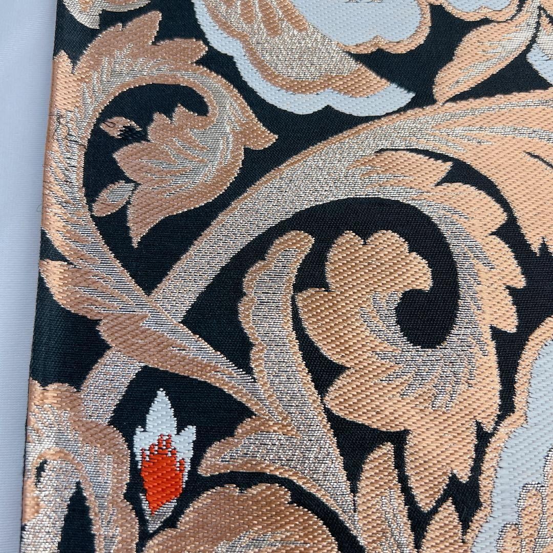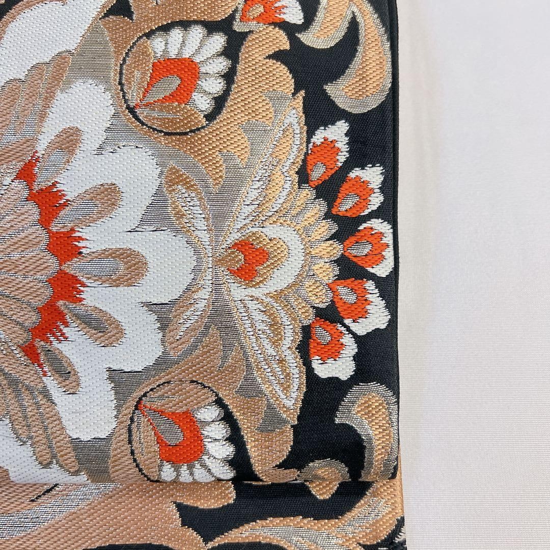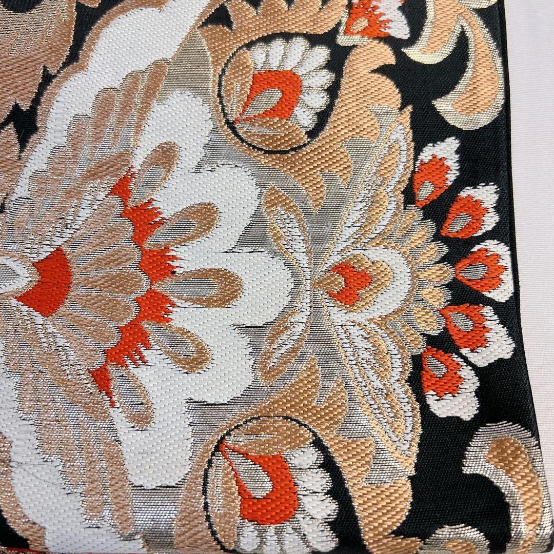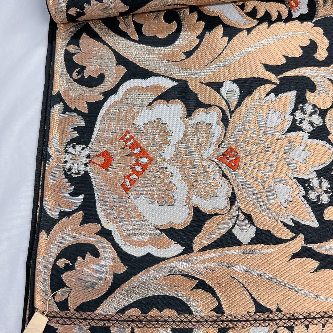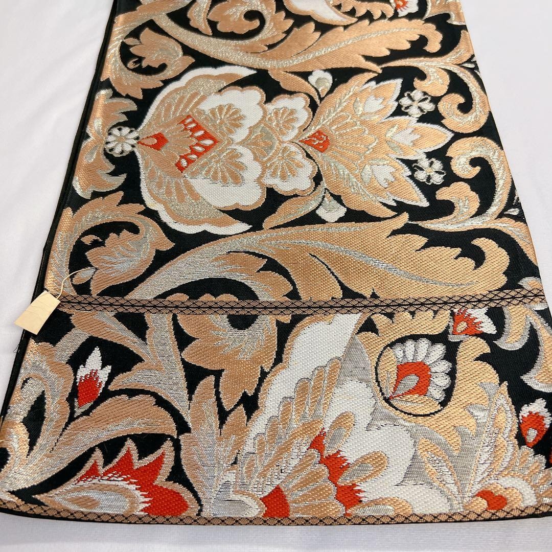 Fukuro Obi Pure Silk Gold Thread Silver Arabesque Pattern Flower Kimono Size Fr