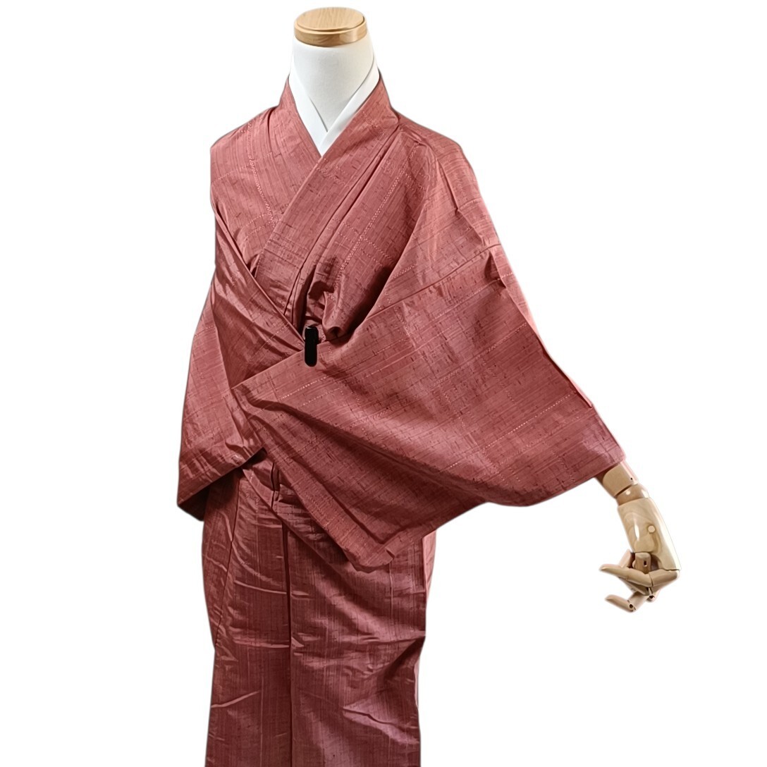 как выглядит Wankotei Wa57 Kimono Pure Silk Tsumugi Red Brown Japan фото