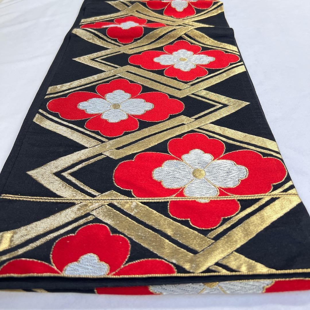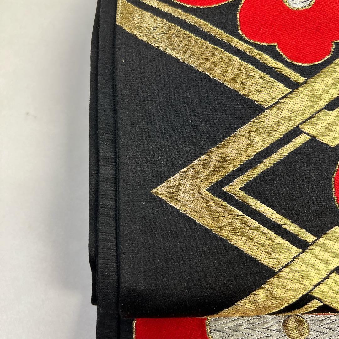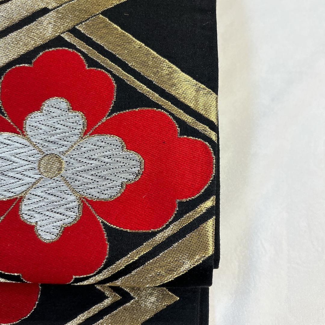 как выглядит Fukuro Obi Pure Silk Gold Thread Silver Hanabishi Kimono Japan фото
