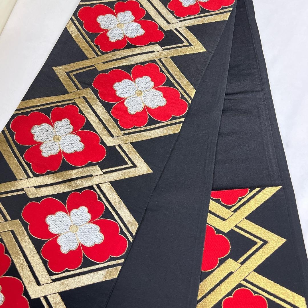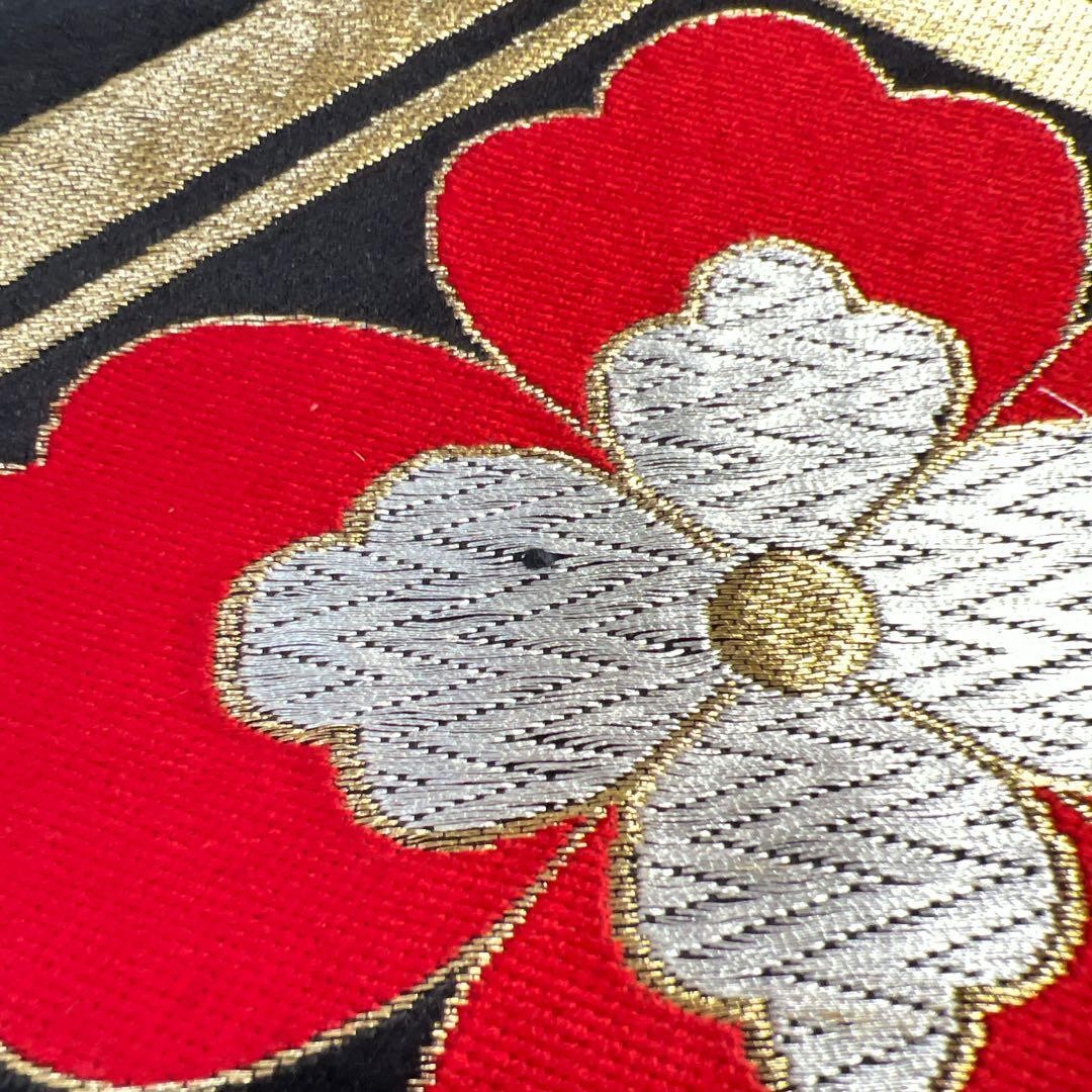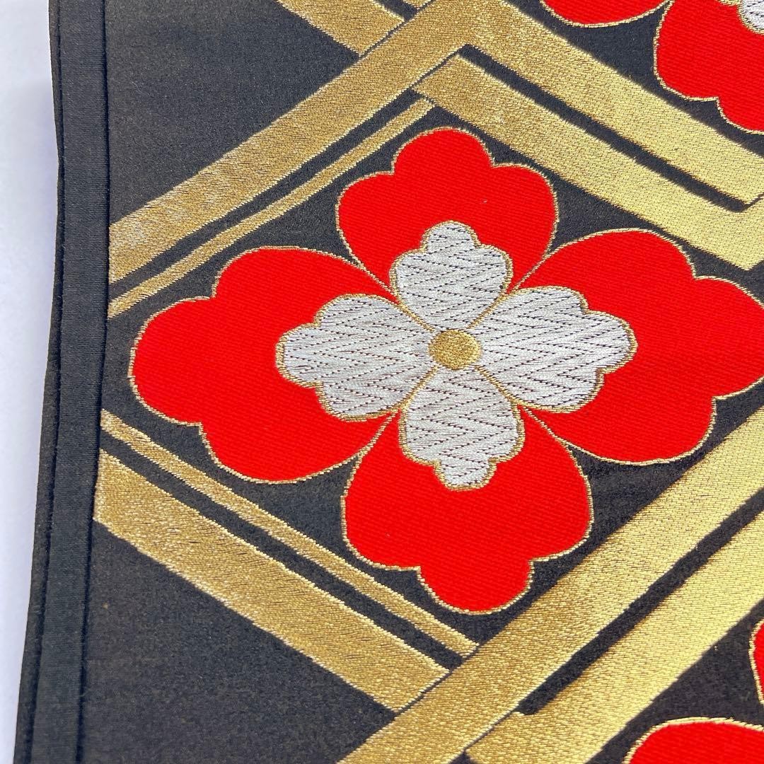 как выглядит Fukuro Obi Pure Silk Gold Thread Silver Hanabishi Kimono Japan фото