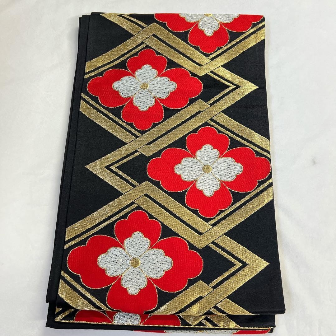 Fukuro Obi Pure Silk Gold Thread Silver Hanabishi Kimono Japan
