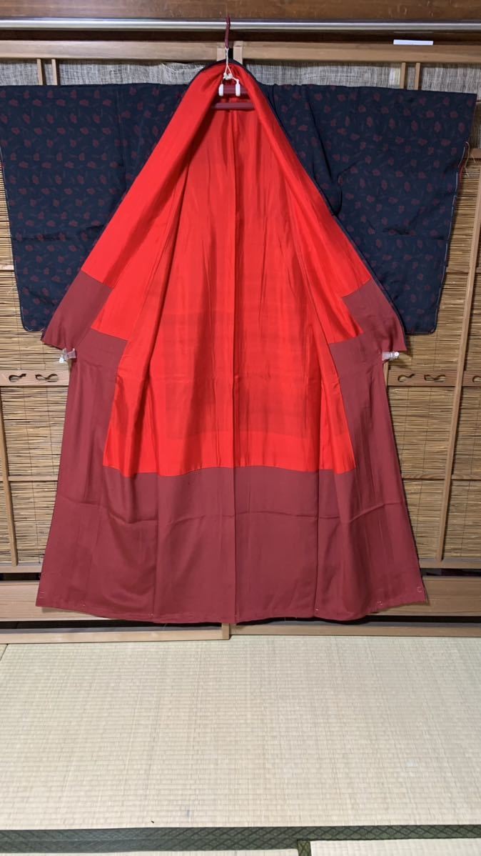 как выглядит Antique Kimono Pure Silk Crepe Black Red Chrysanthemum Leaf Japan фото