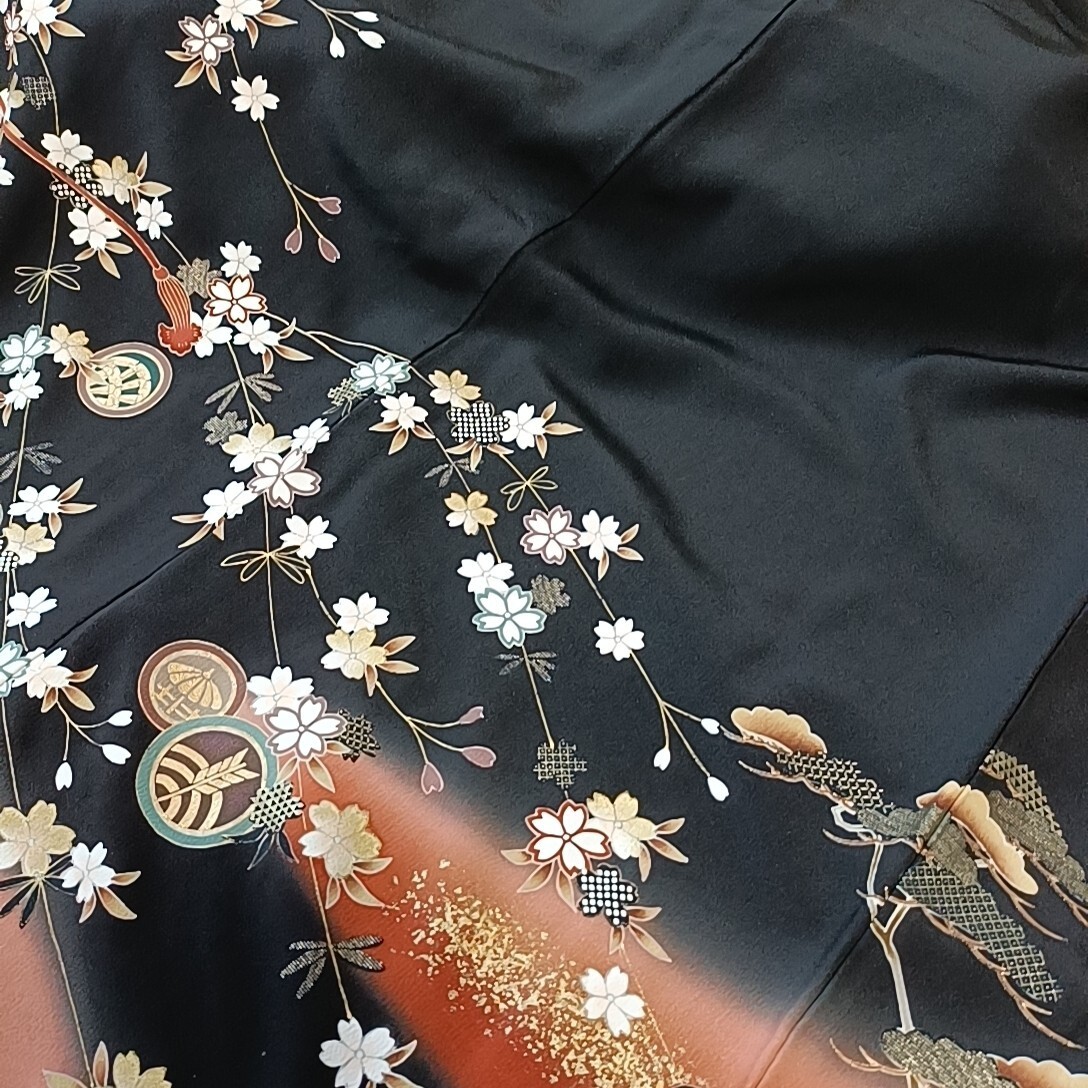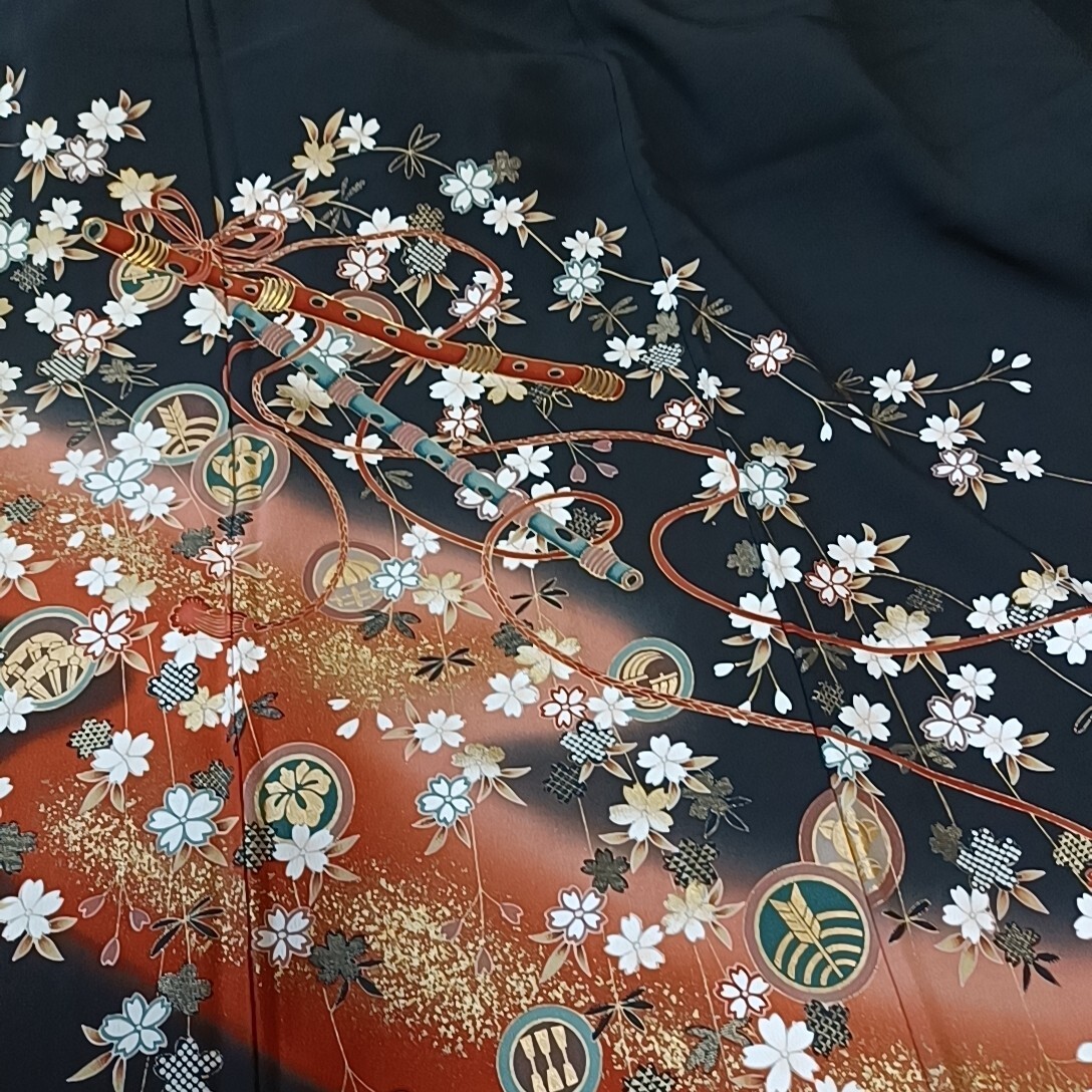 как выглядит Kaerutei Kimono Pure Silk Black Tomesode Flute Size L Japan фото