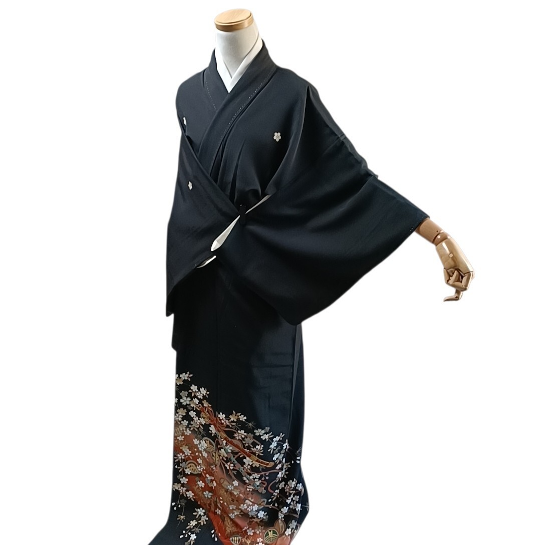 Kaerutei Kimono Pure Silk Black Tomesode Flute Size L Japan