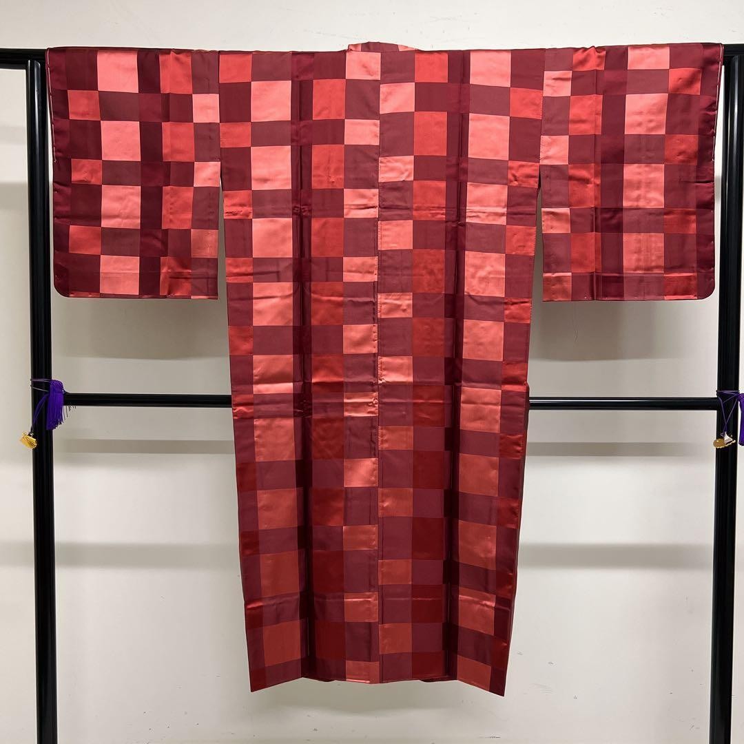 Pure Silk Checkered Kimono, Lattice Pattern, Japan