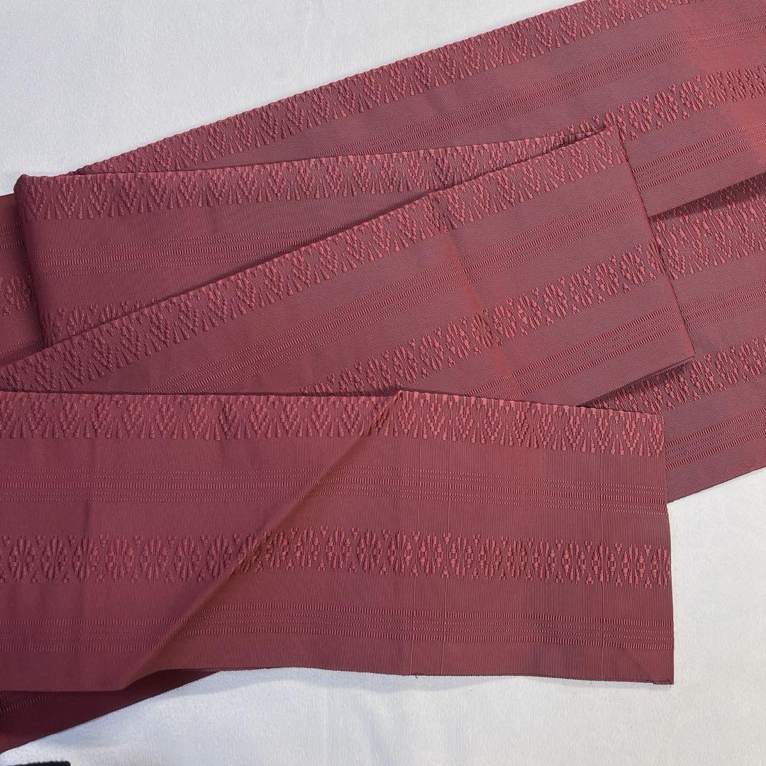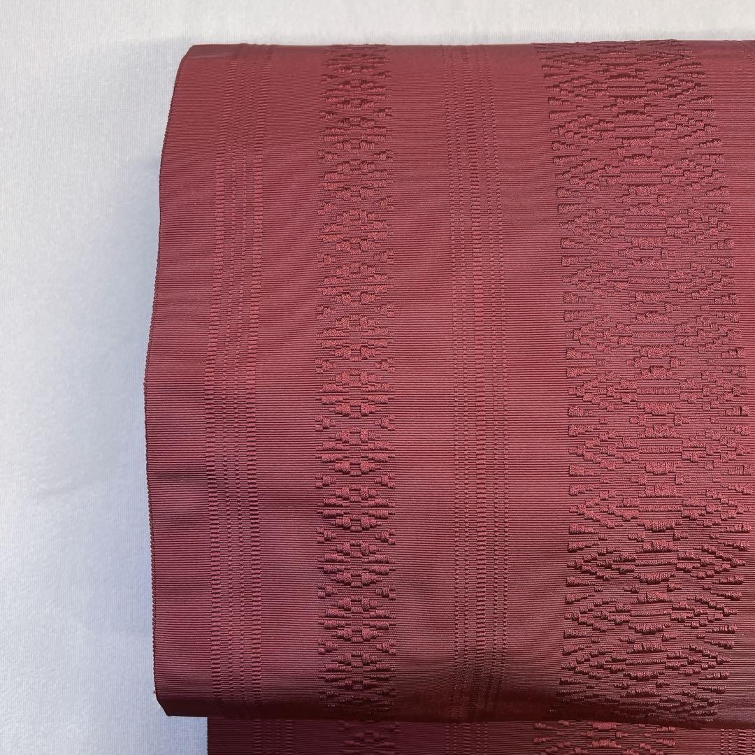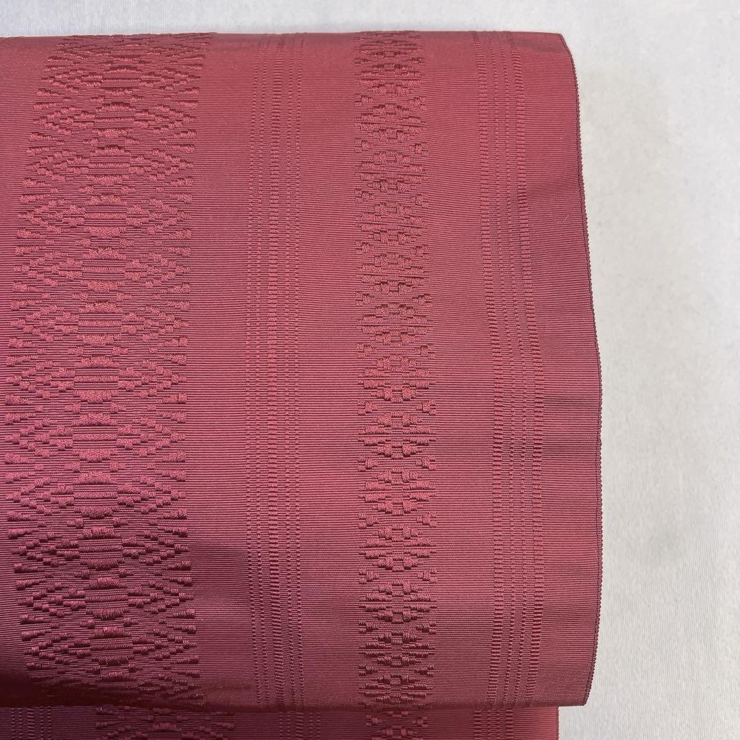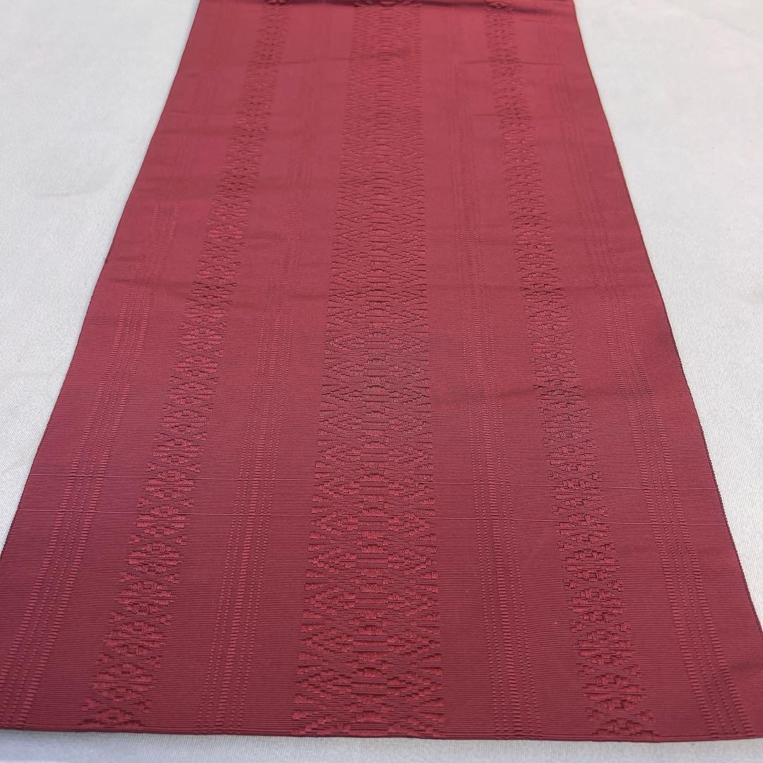 как выглядит Nagoya Obi Pure Silk Hakata Ori Kimono Wine Red Used Japan фото