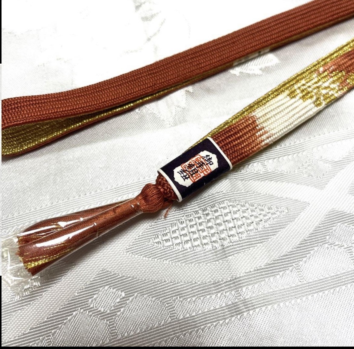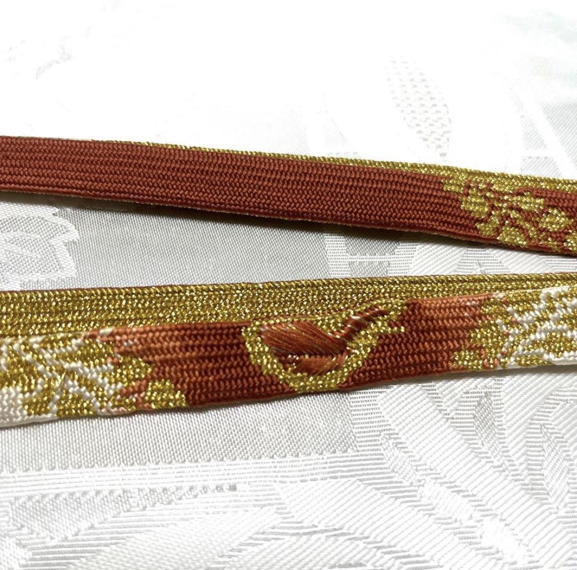 как выглядит Kimono Obi-Jime Belt Accessory Red Brown Silk 156cm Japan фото