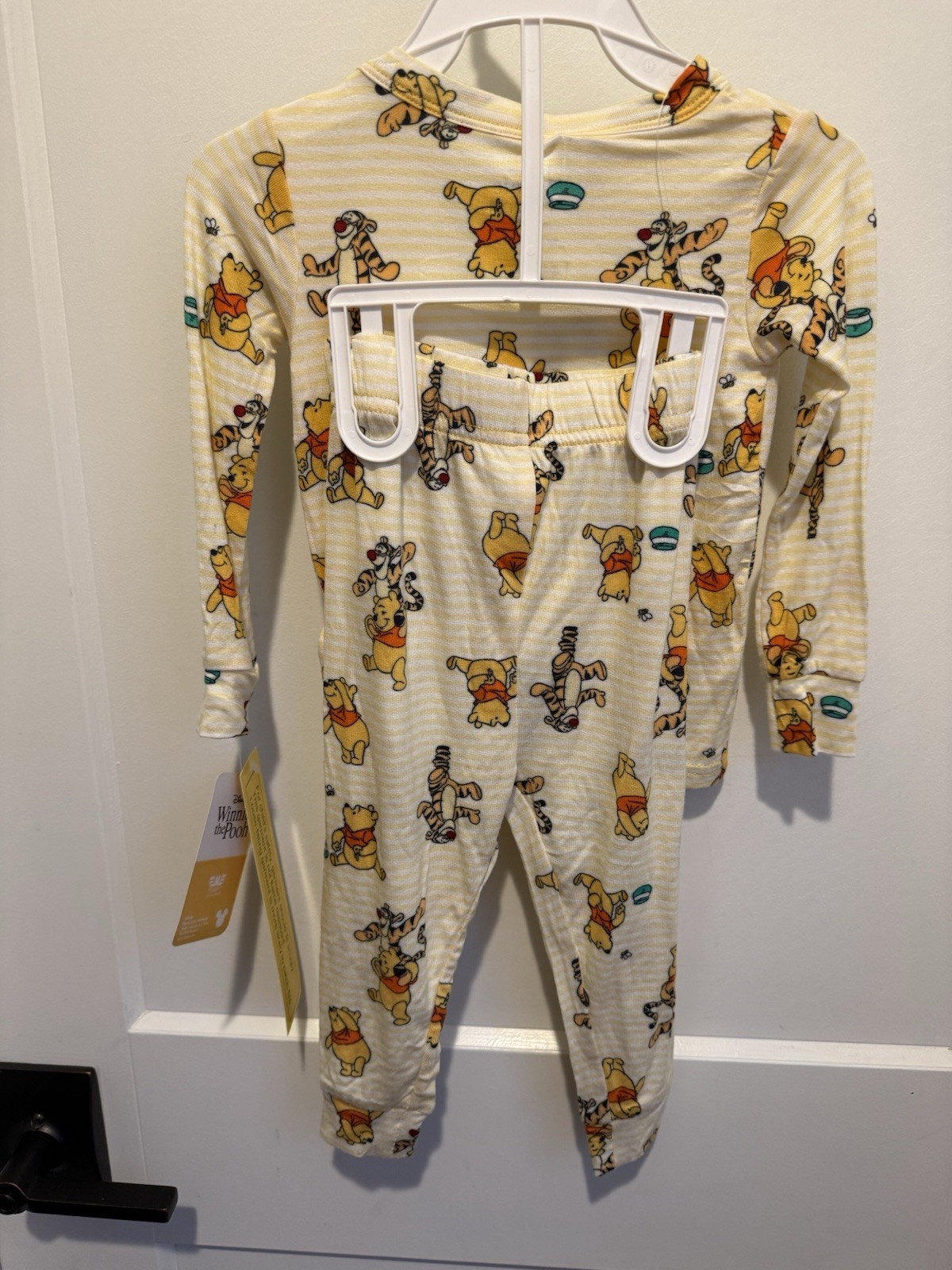 Winnie the Pooh Disney viscose ultrasoft pajamas yellow stripe 24mo unisex NEW