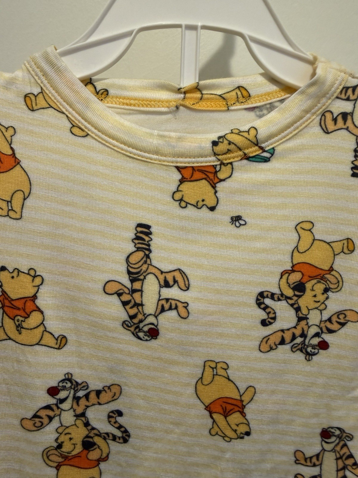 как выглядит Winnie the Pooh Disney viscose ultrasoft pajamas yellow stripe 24mo unisex NEW фото