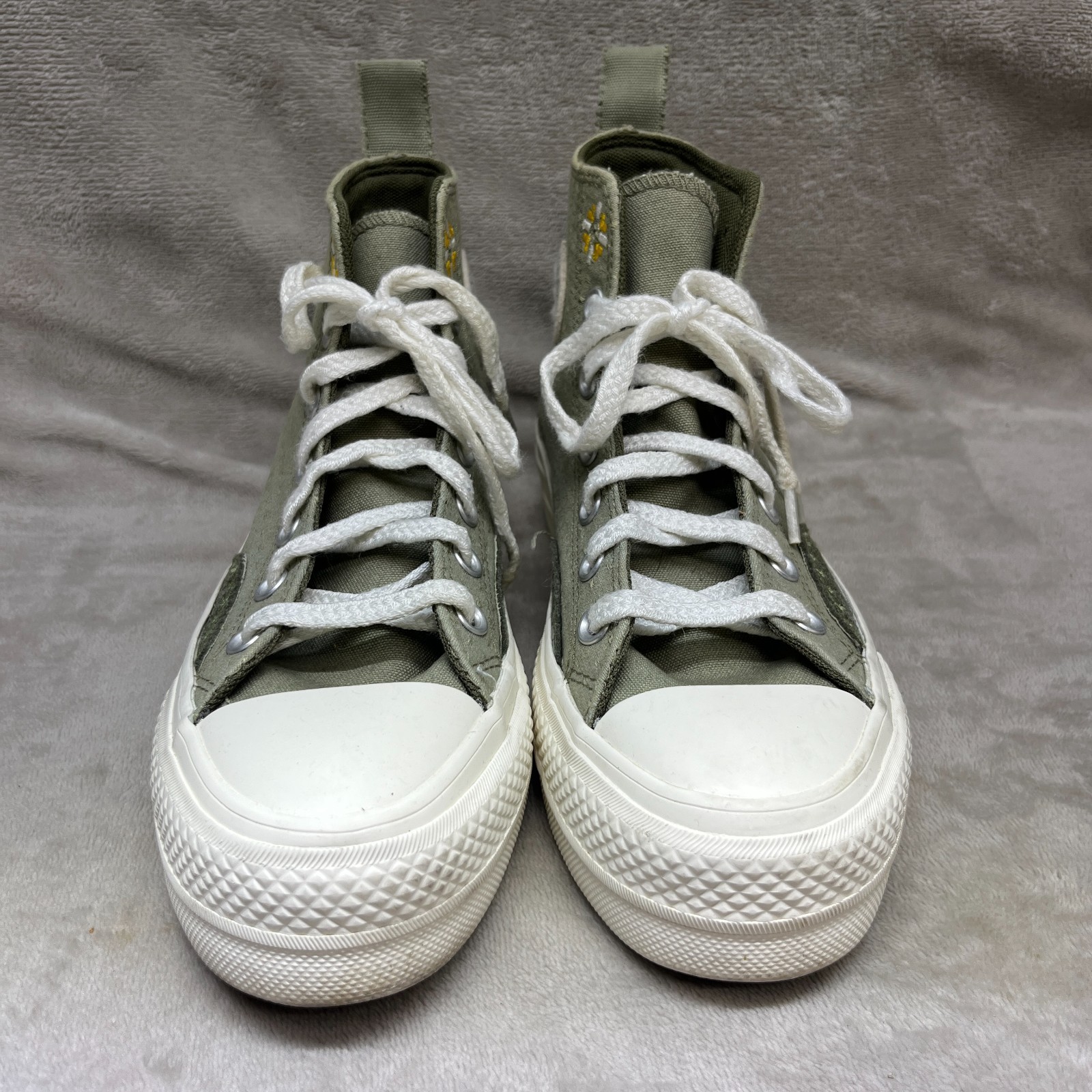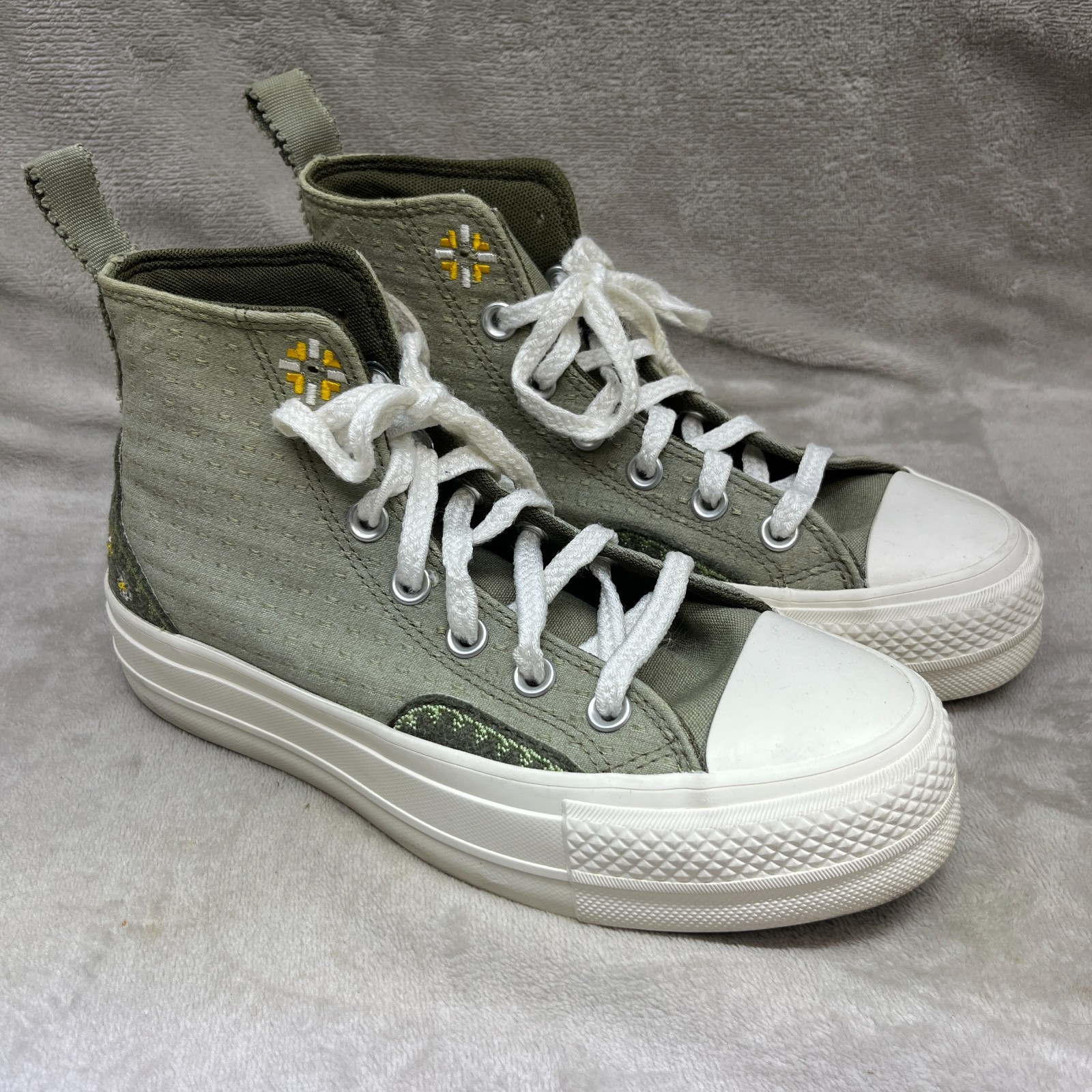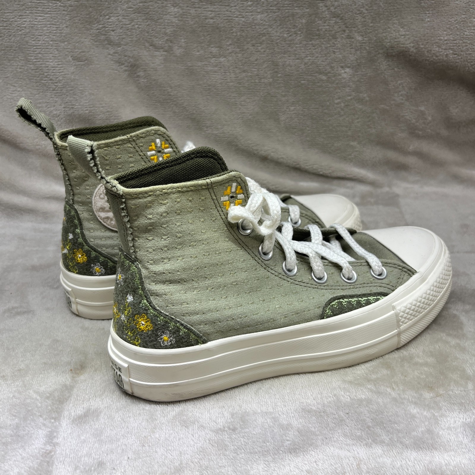 Converse Sz 6 Chuck Taylor All Star Lift Platform Green Floral Autumn Embroidery