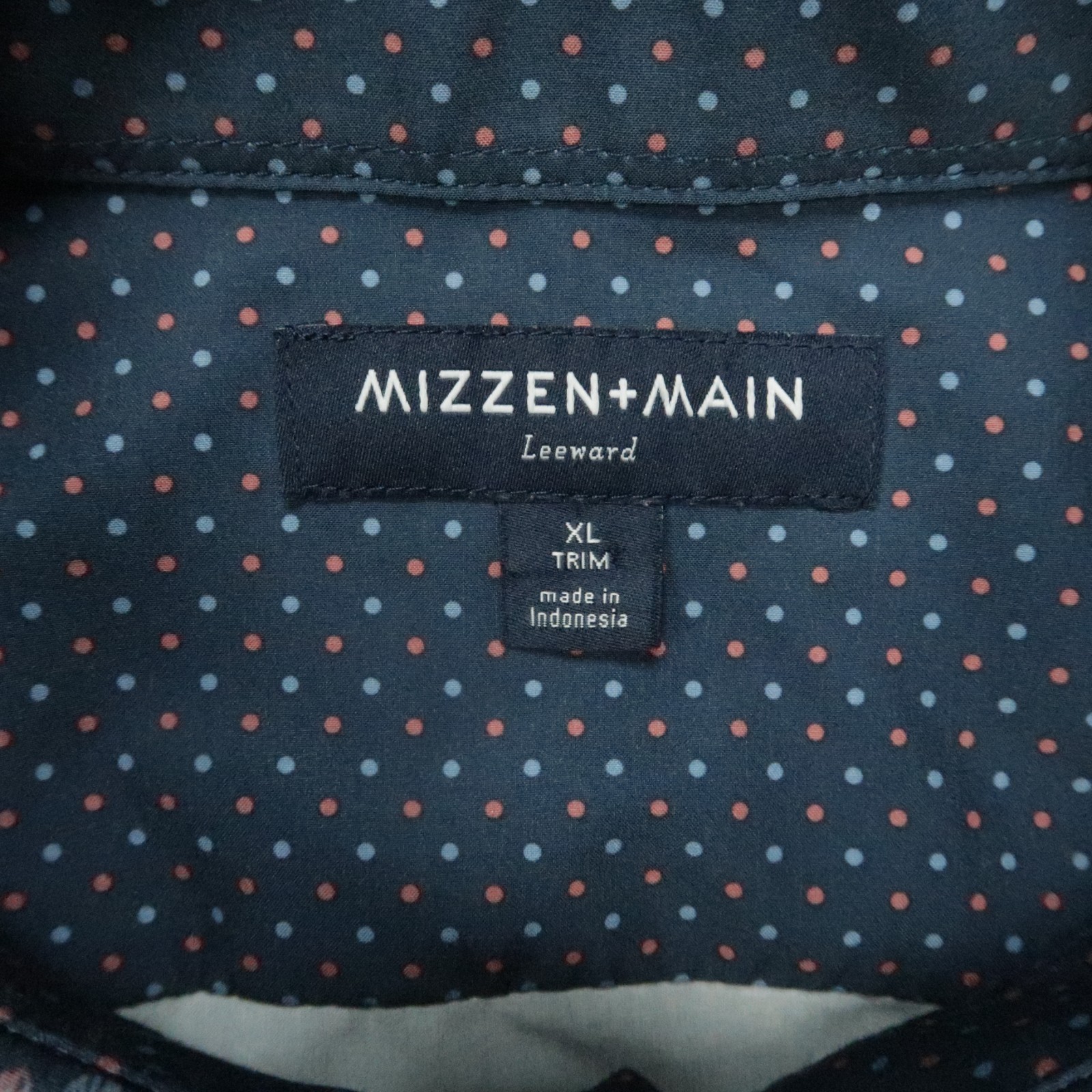 как выглядит Mizzen Main Shirt Mens XL Blue Trim Fit Polka Dot Short Sleeve Performance фото