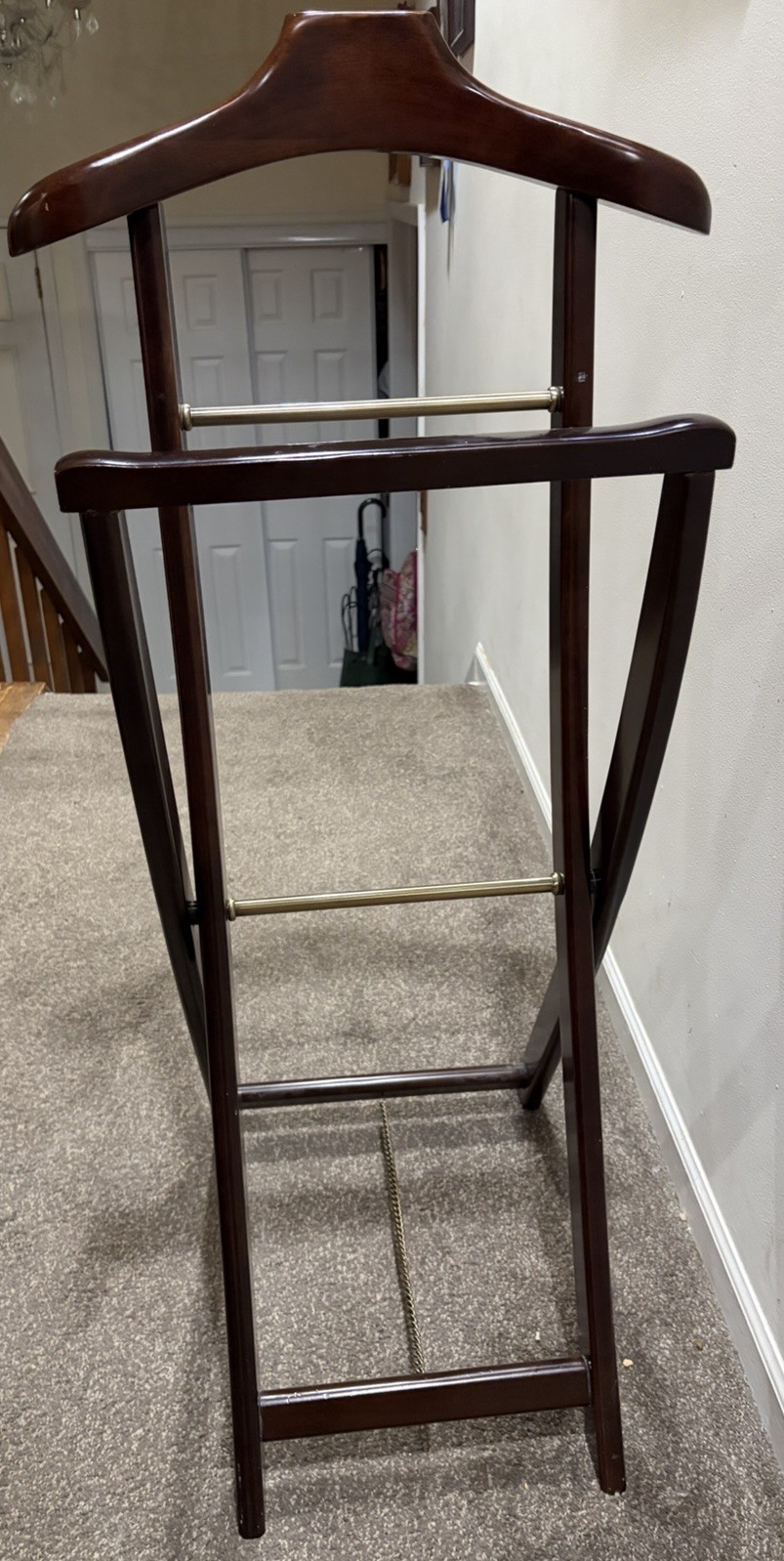 как выглядит THE BOMBAY COMPANY Valet Butler Suit Rack Stand Hanger Slack Pants Wood 40x18 фото