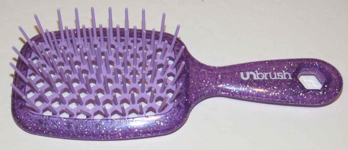 как выглядит 2 UnBrush Mini Untangle Flat Hair Brush by FHI Heat Purple Detangler Sparkle NIB фото