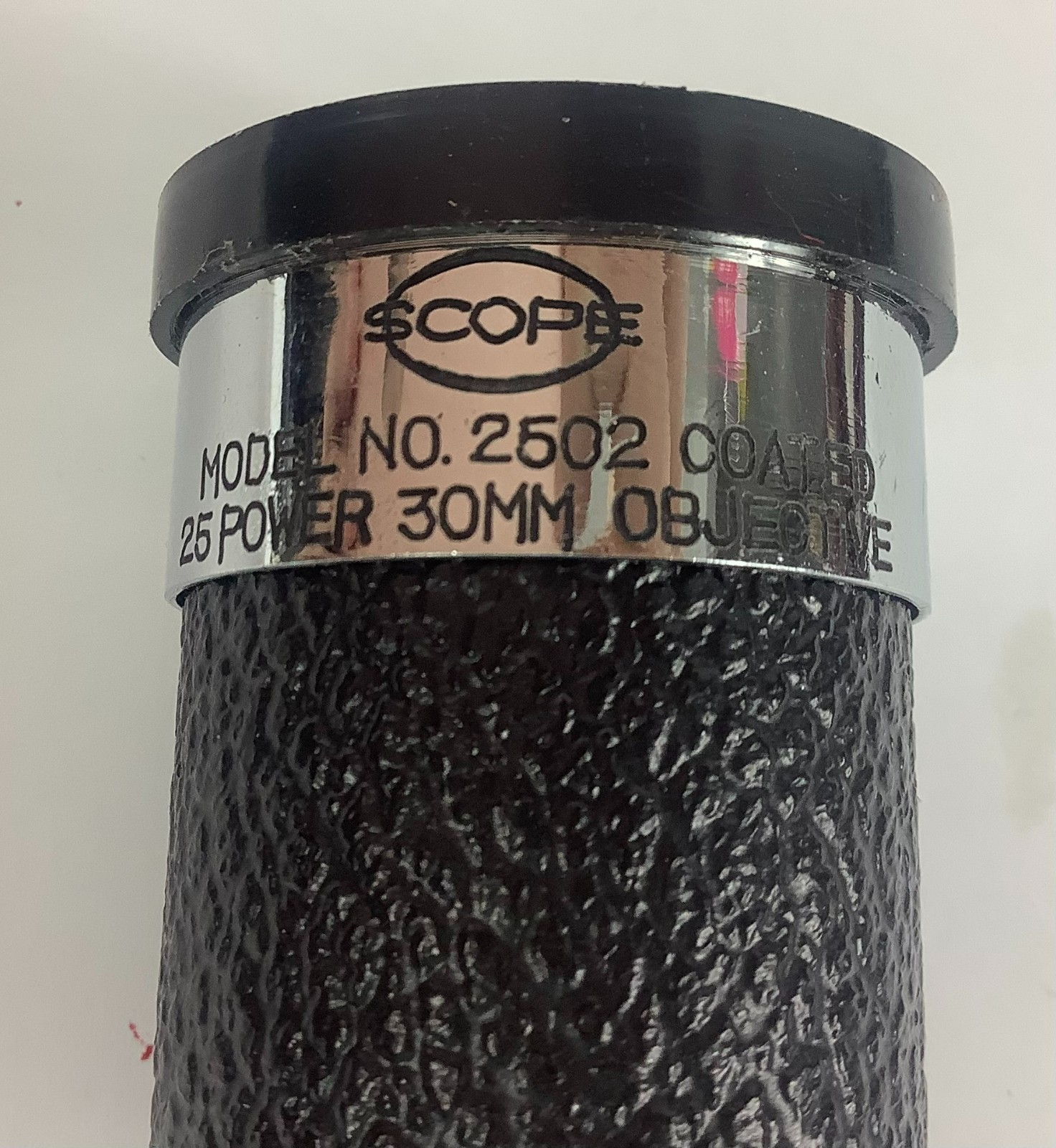 Vtg Scope Model 2502 Coated 25 Power 30 MM Objective Telescope Monocular