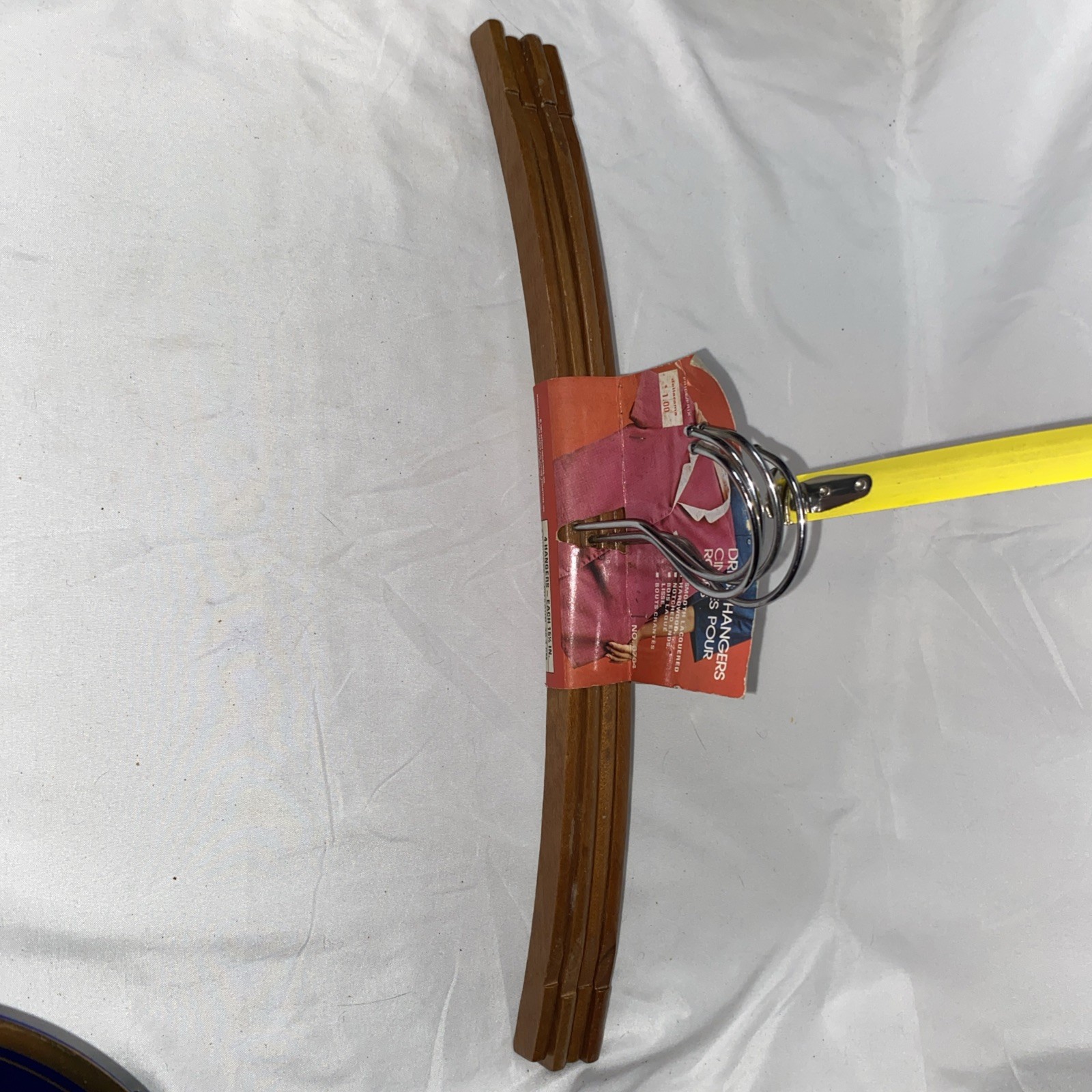 как выглядит Lot Of 4 Vintage Wooden Curved Hangers In Original Packaging фото