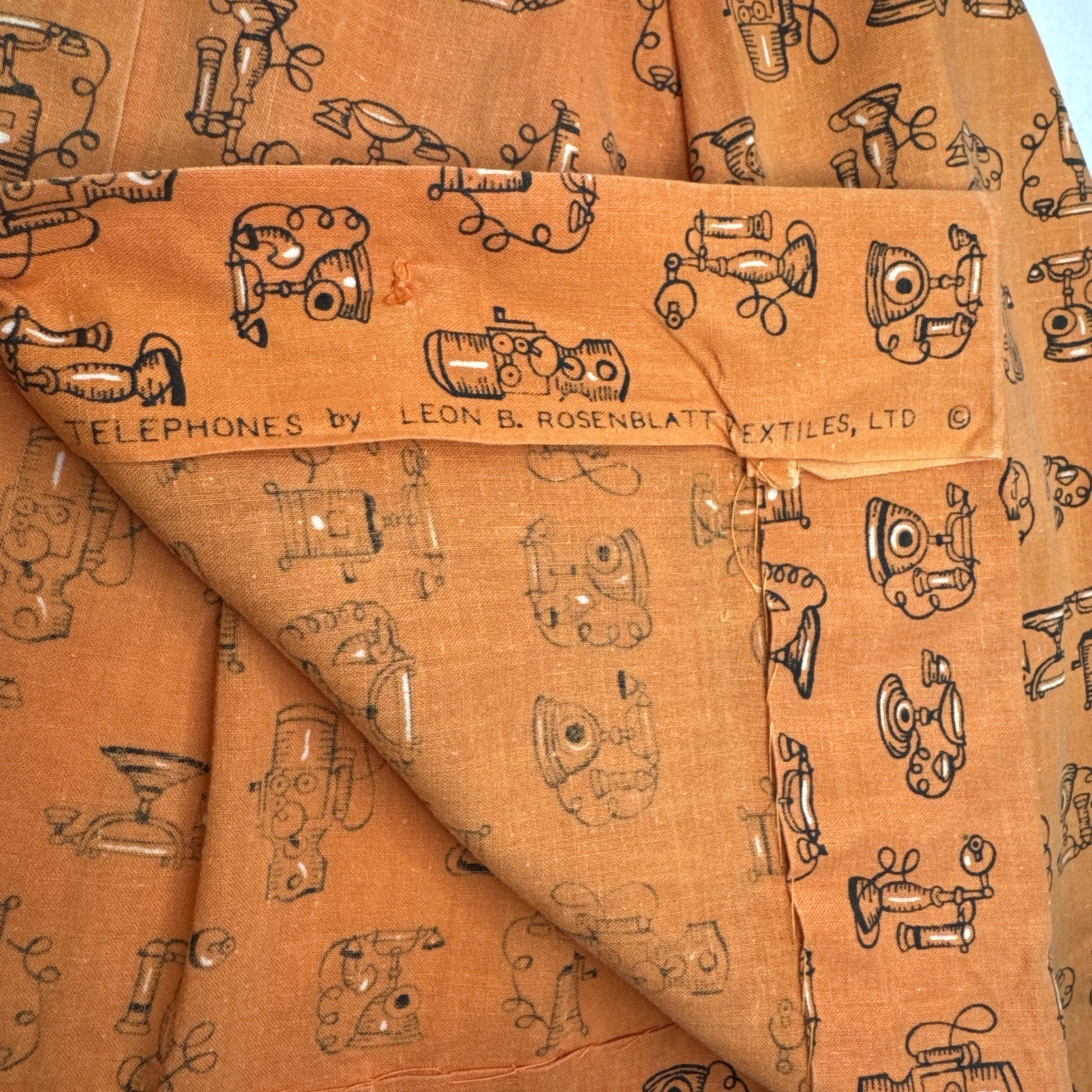 Vintage Antique Child s Dress 1940-50s Orange Telephone Fabric Collar Cap Sleeve