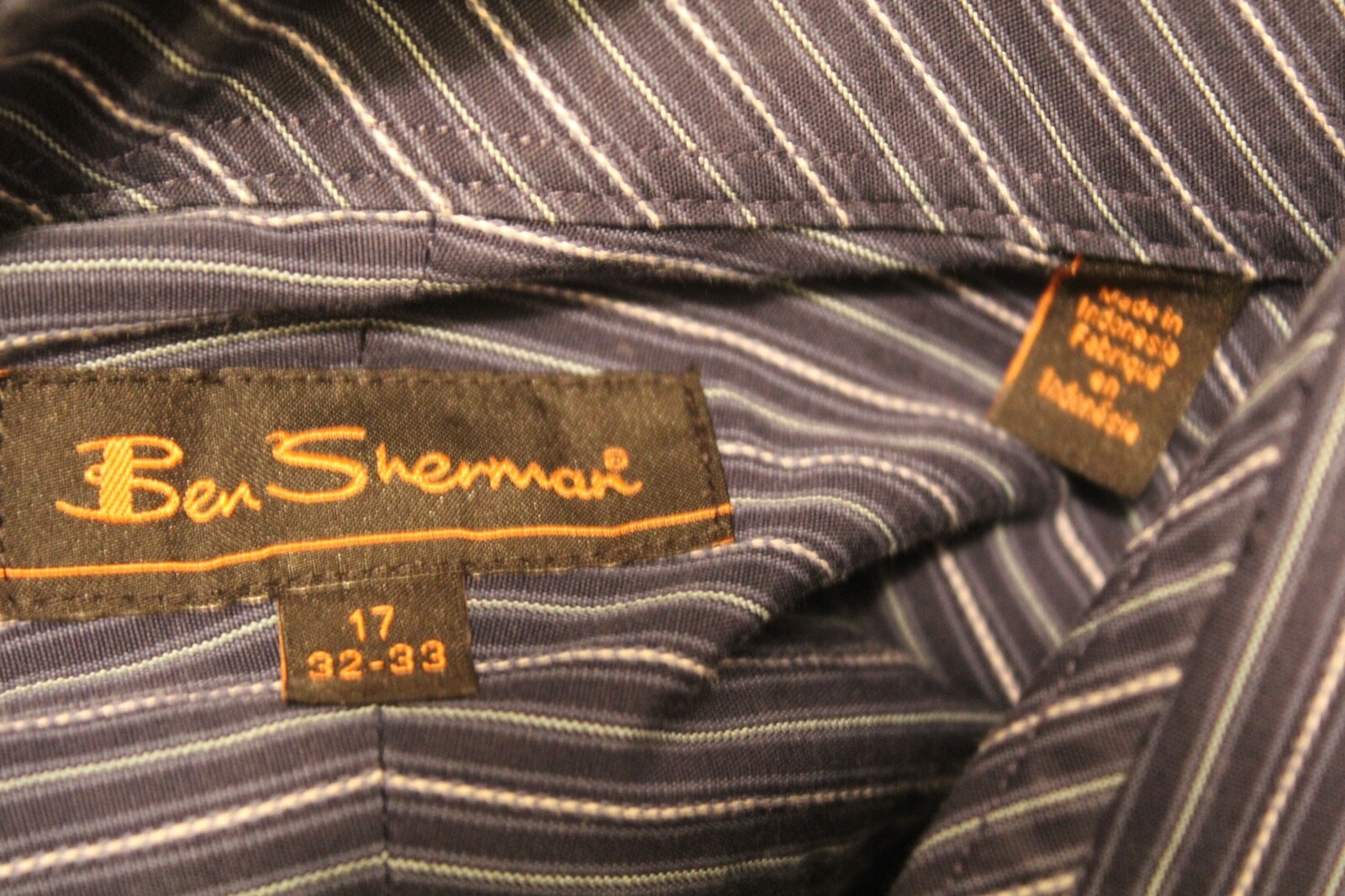 как выглядит Ben Sherman Blue Stripe Button Down L/S Dress Shirt Size 17 32/33 фото