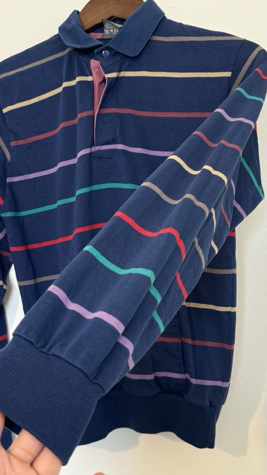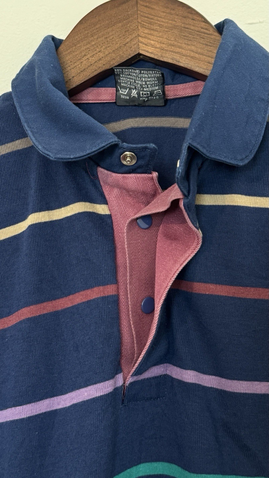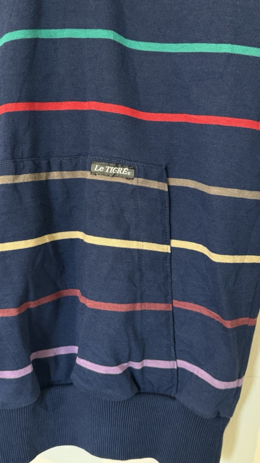 как выглядит Vtg 80s Le Tigre Mens Small Striped Blue Long Sleeve Polo Shirt Pocket Snap USA фото