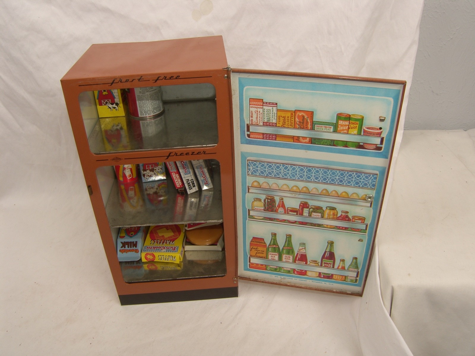 Vintage 1960's Wolverine Toy Co Tin Frost Free Refrigerator Miniature Kitchen