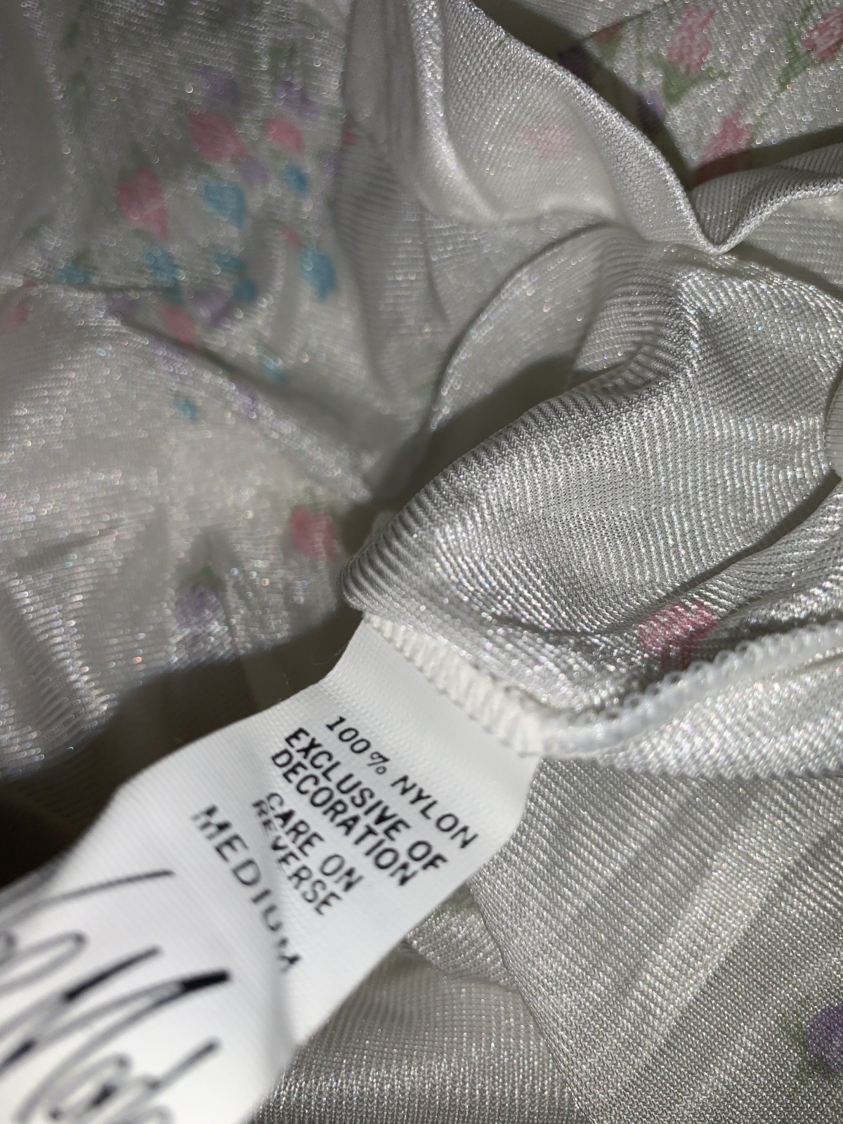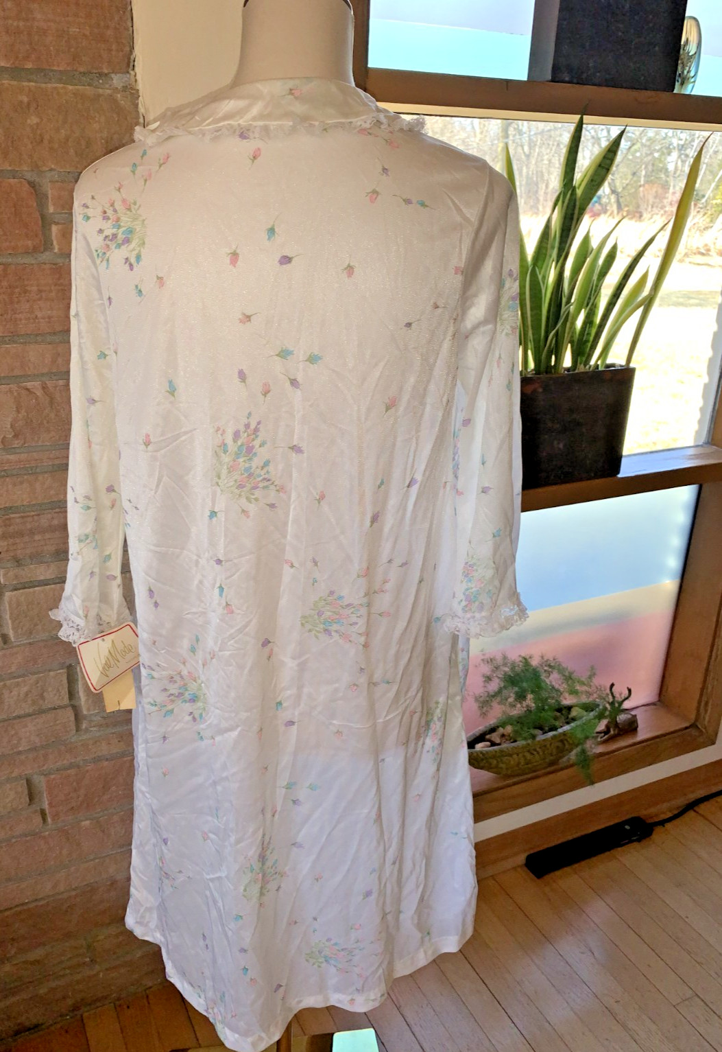 Vintage Val Mode Floral White Silky Nylon Nightgown Peignoir Robe NOS