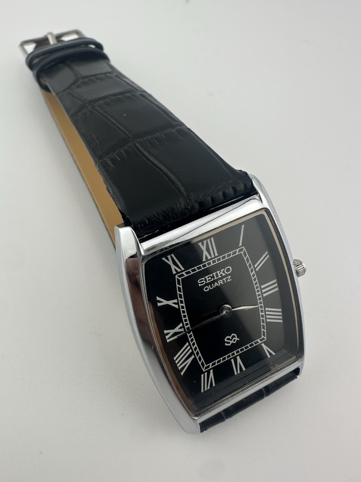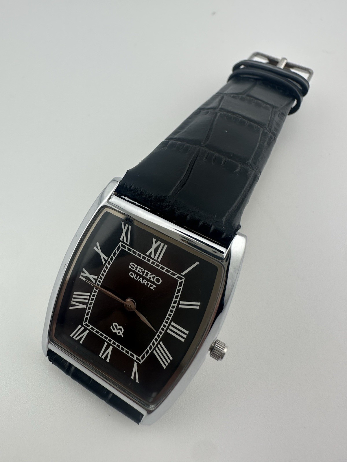 BLACK DIAL Vintage Seiko Slim Quartz Men s Wrist Watch