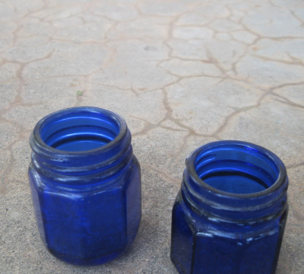 • Vintage Noxzema Cobalt Blue 2" 2 1/4" tall 8-sided Glass Jar 2