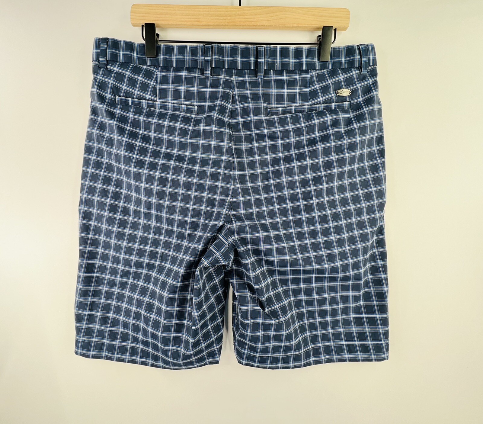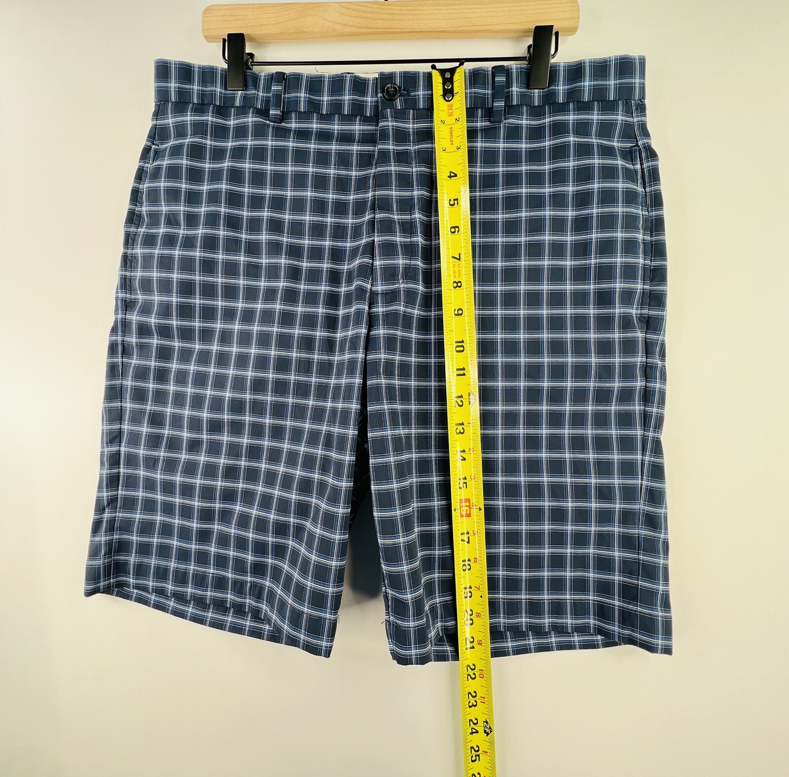 GREG NORMAN Shark Mens Sz 36 Casual Blue Plaid Athletic Golf Shorts