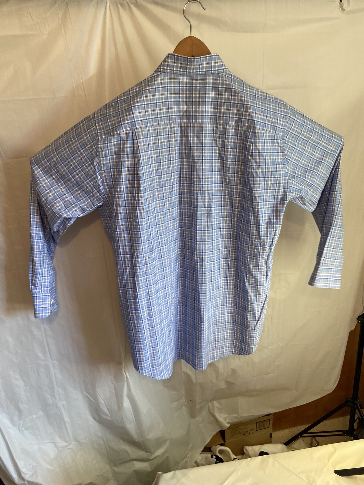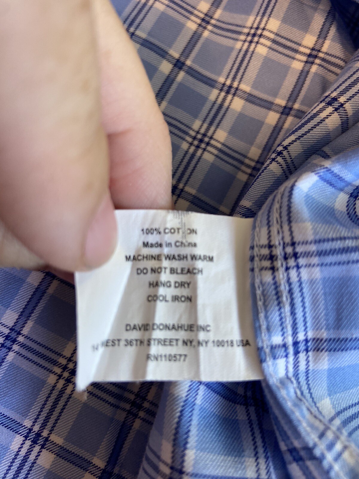 как выглядит Mens David Donahue Blue Plaid Long Sleeve Button Down Dress Shirt-Size 17 34/35 фото