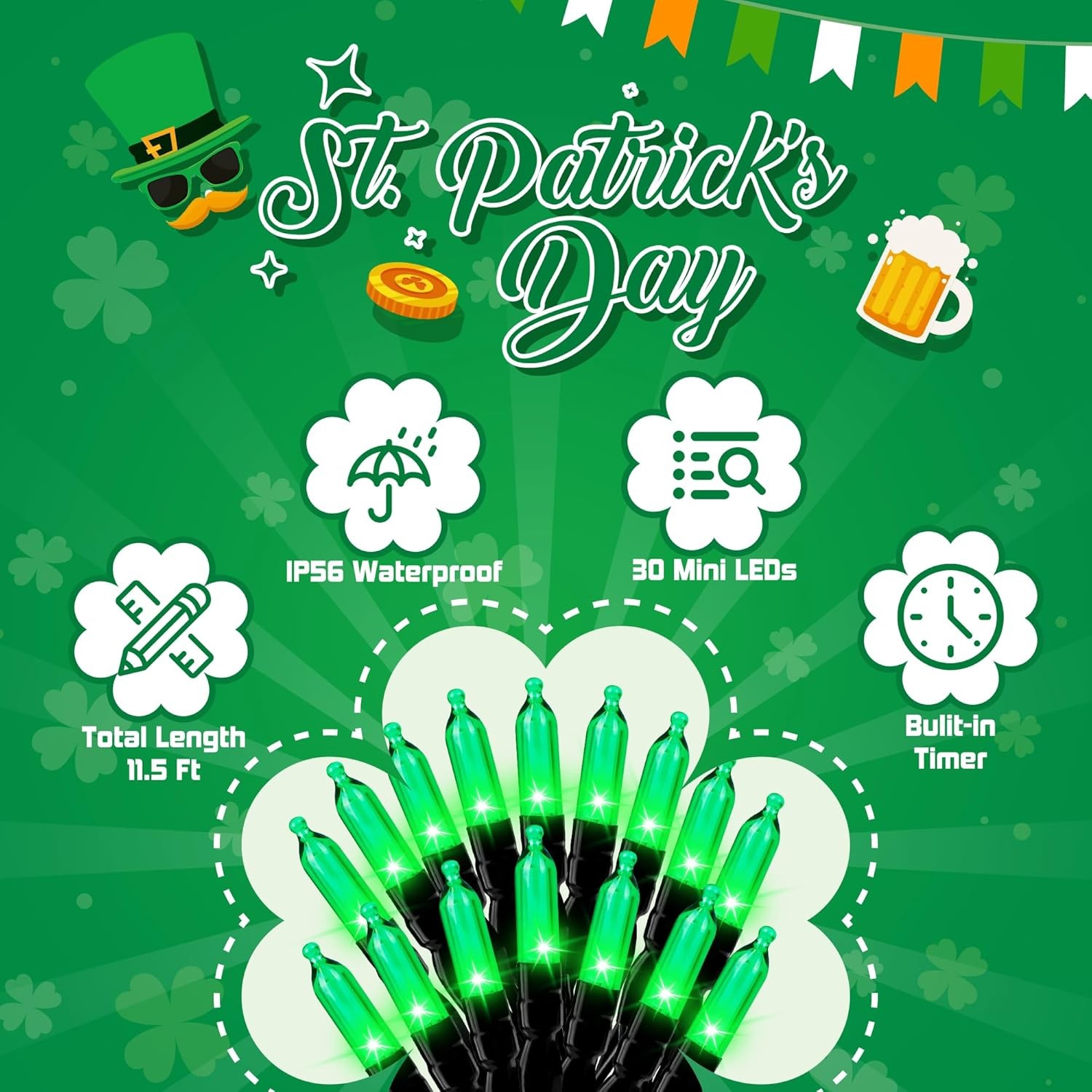 Included Components: St Patricks Day Lights