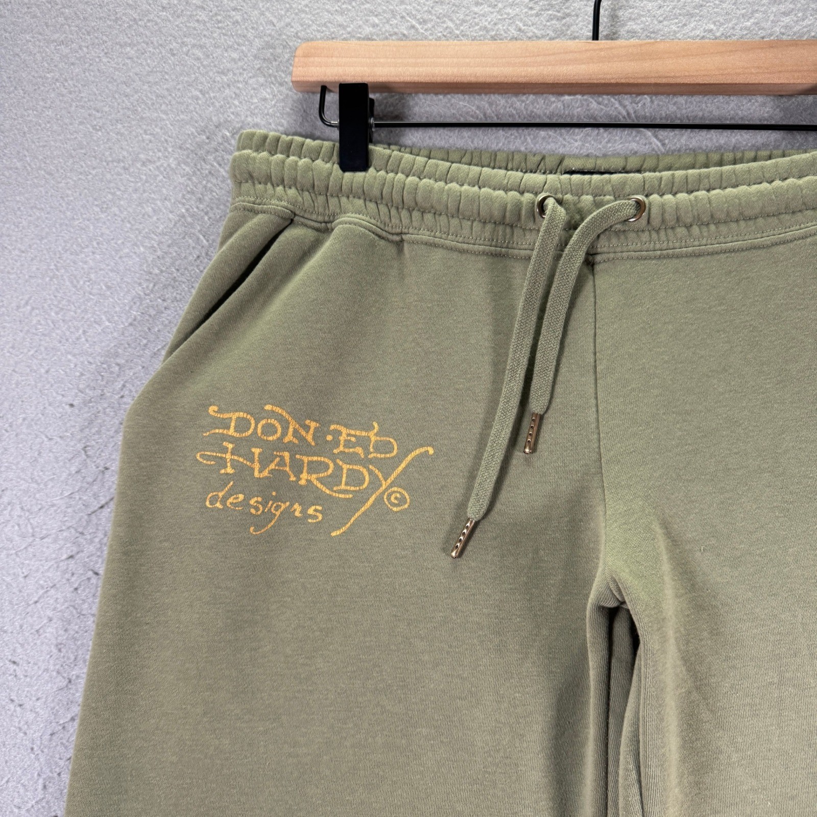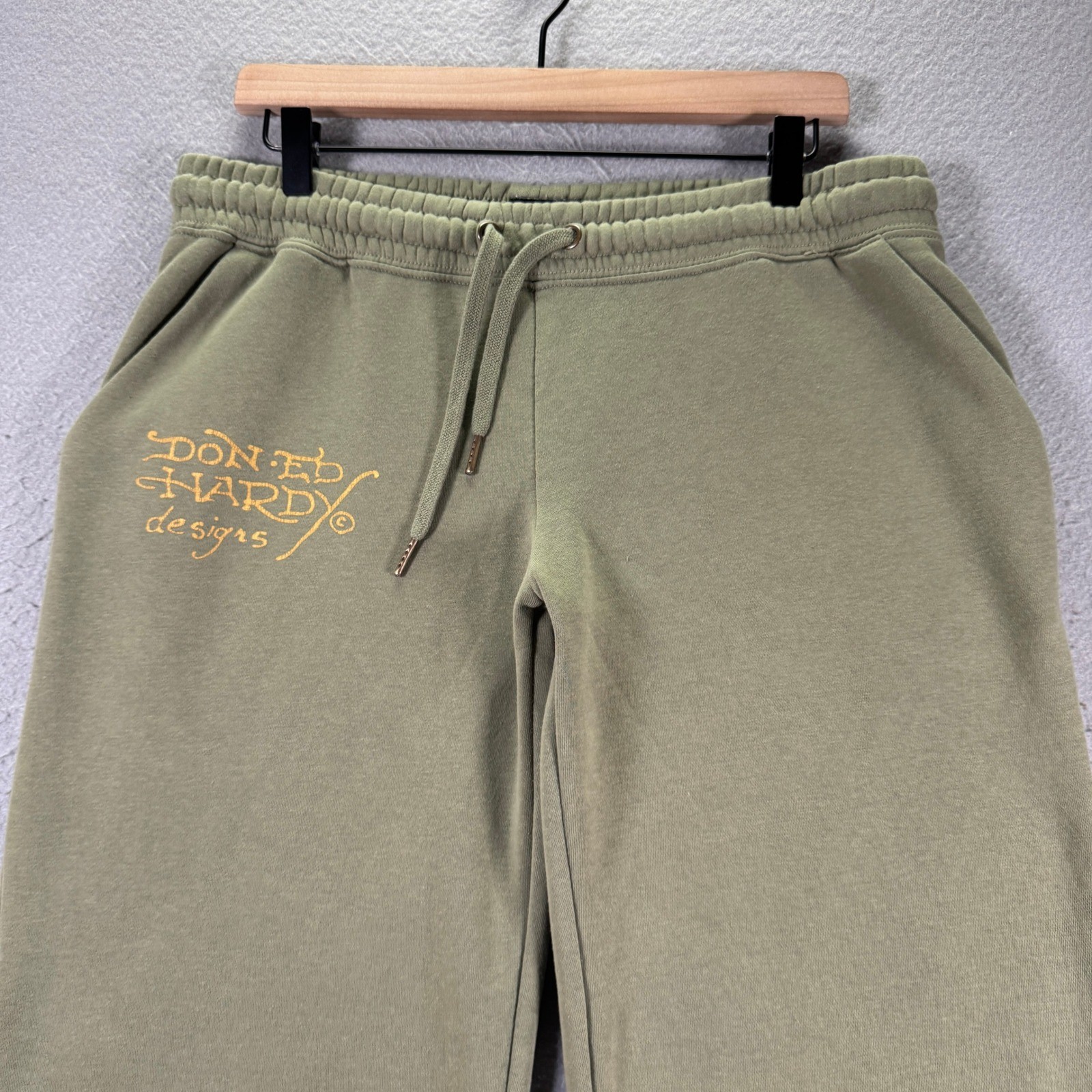 Ed Hardy Butterfly Pant Sage Green Wide Leg Graphic Sweatpants EHW8200-27 L