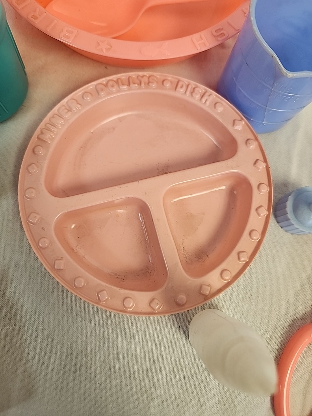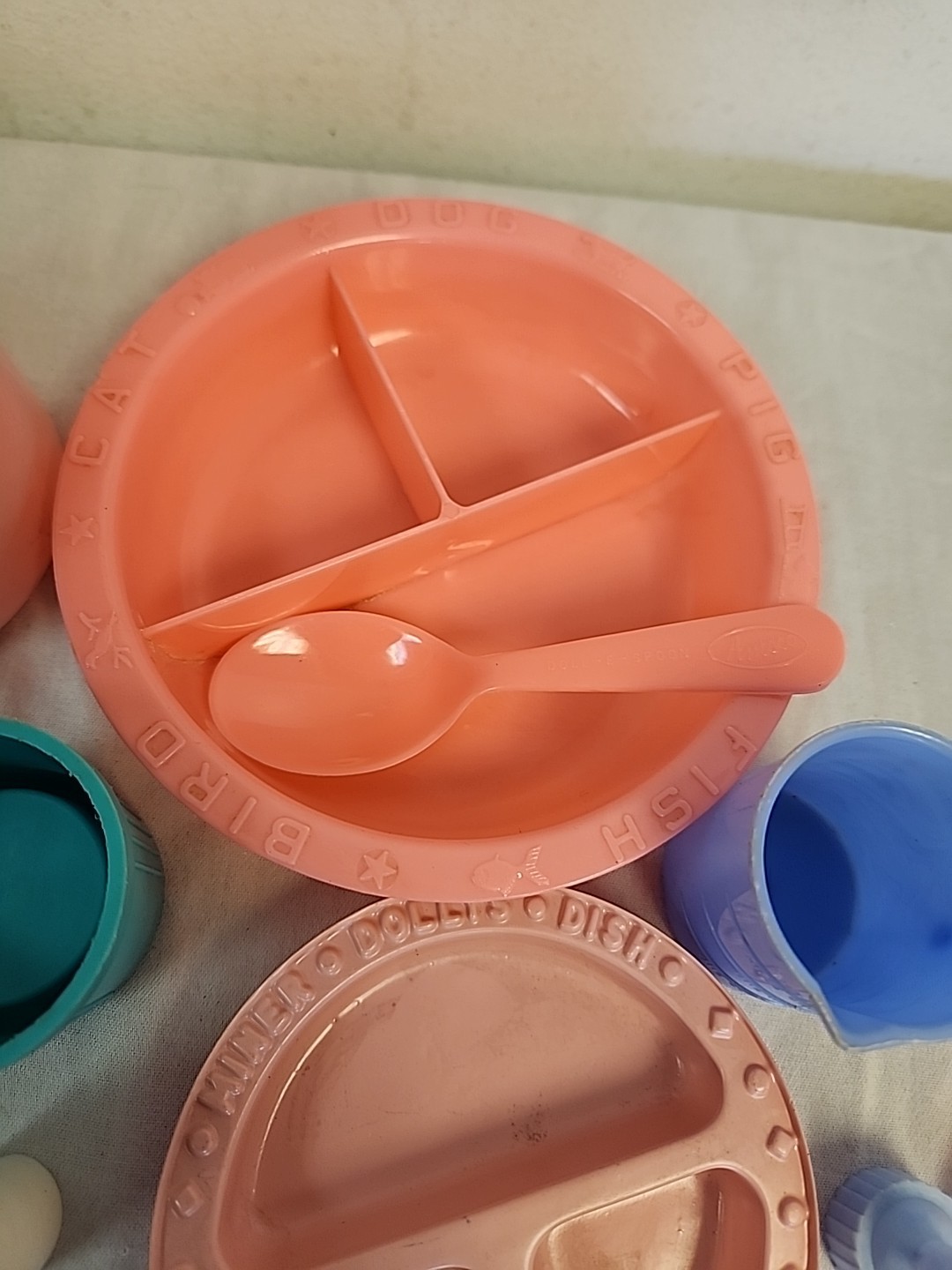 как выглядит VTG Amsco Doll-E-Toys Dish Spoon Forceps/Tongs Measuring Cup Bottles Carrier фото