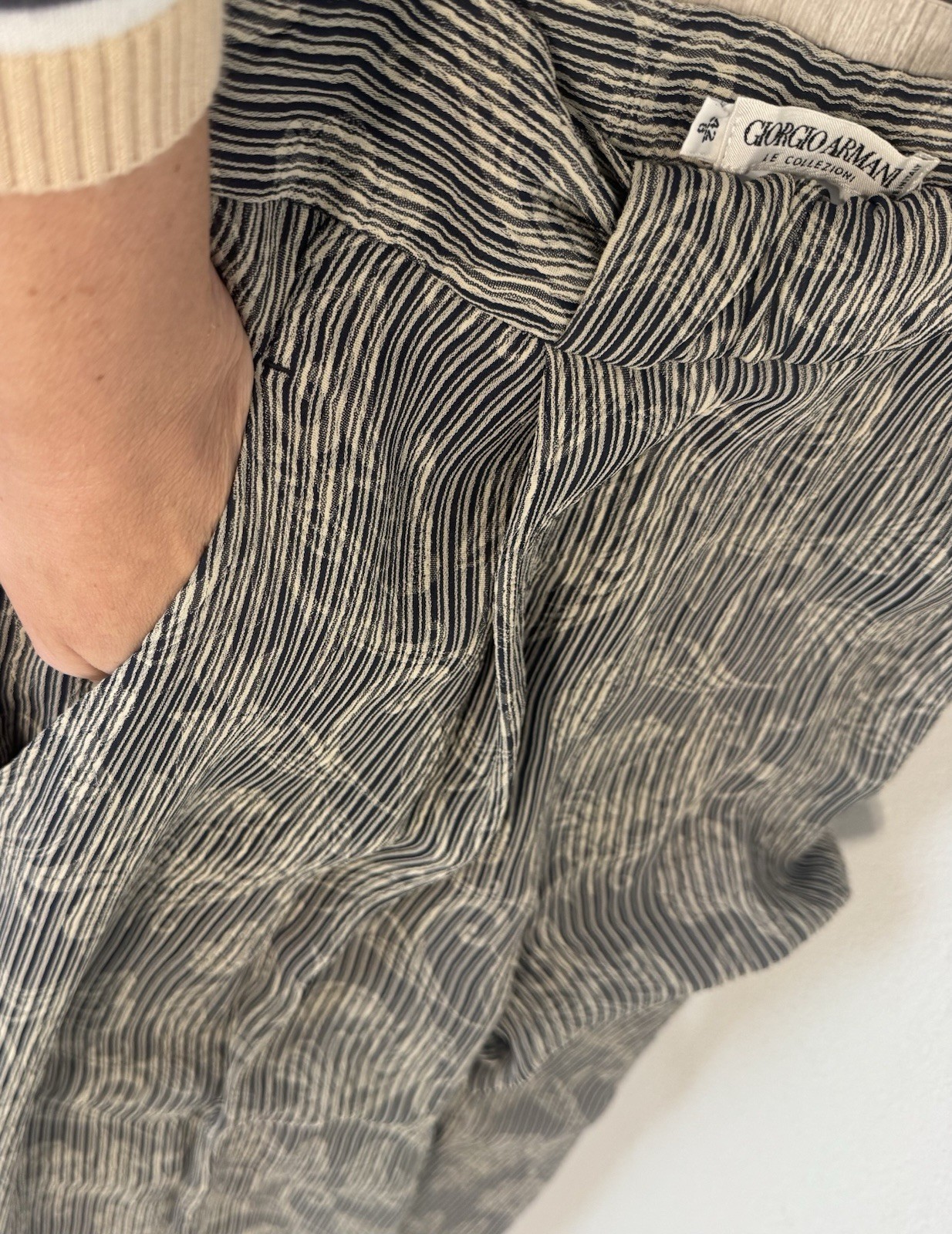 как выглядит Vintage Giorgio Armani Le Collezioni Pants High Waist Pleated Striped Floral 8 фото