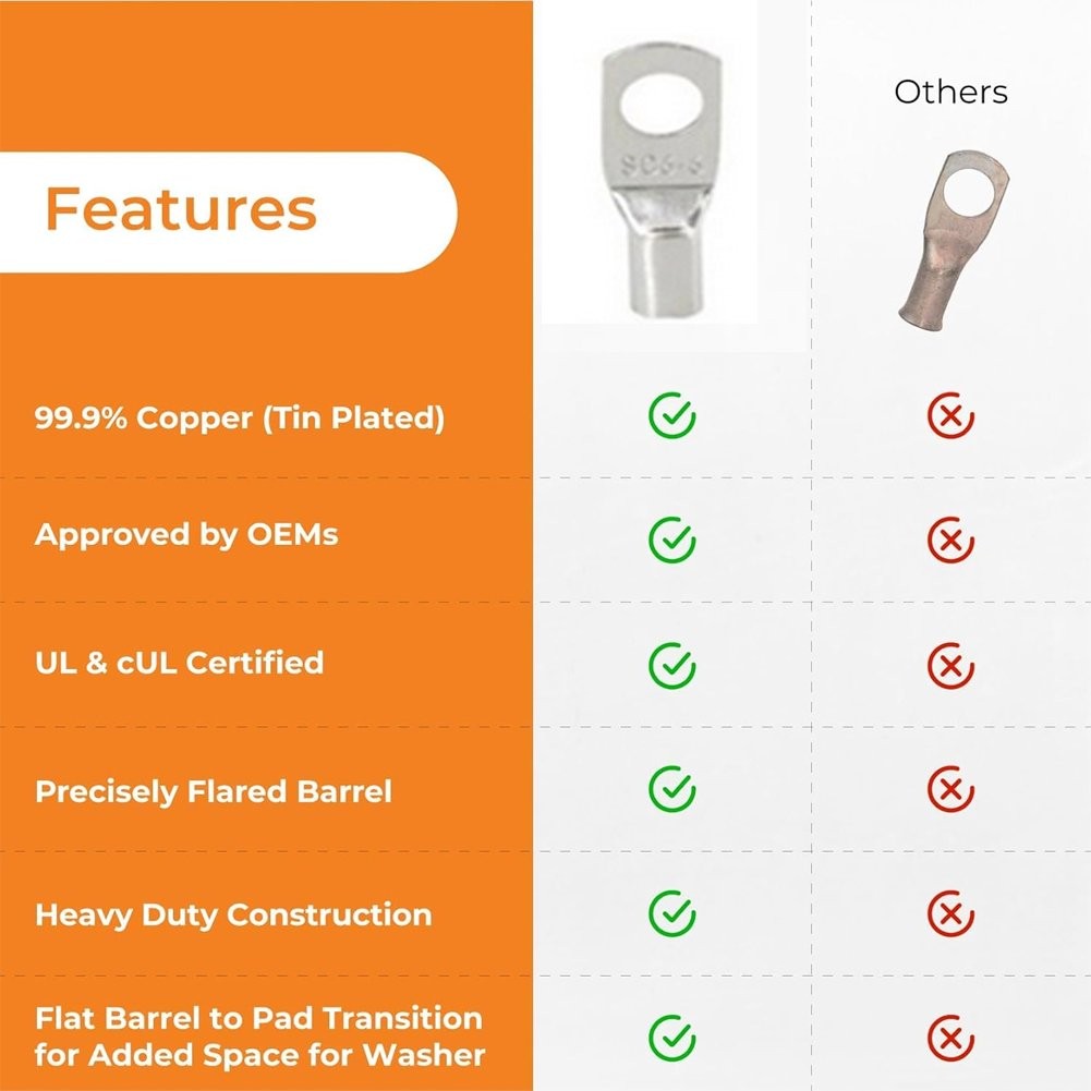 280PCS Copper Lugs Ring Terminals Bare Battery Welding Crimp Wire Connectors Kit