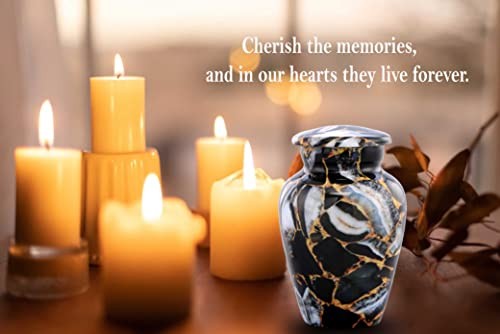 Small Keepsake Cremation Urns for Human Ashes - Marble Finish Luxury Black