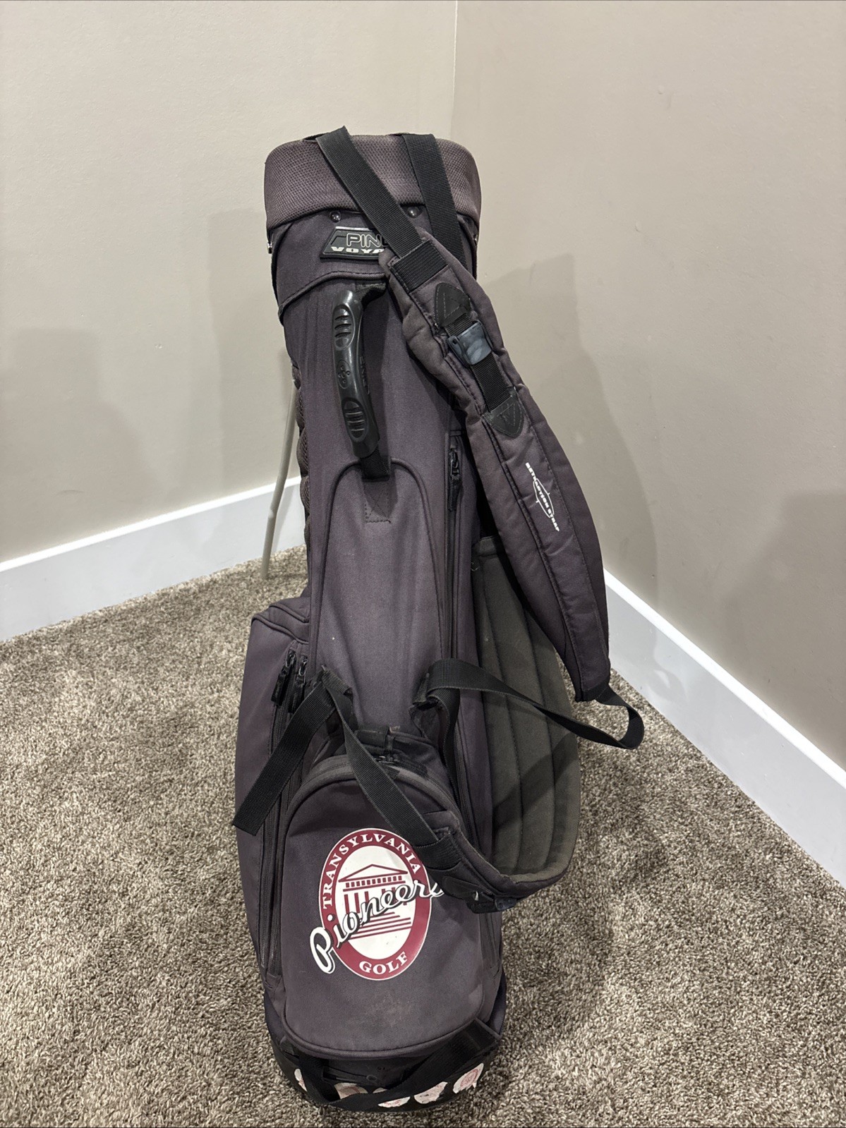 как выглядит PING VOYAGE 4 Way STAND BAG White Black Transylvania University With Raincover фото