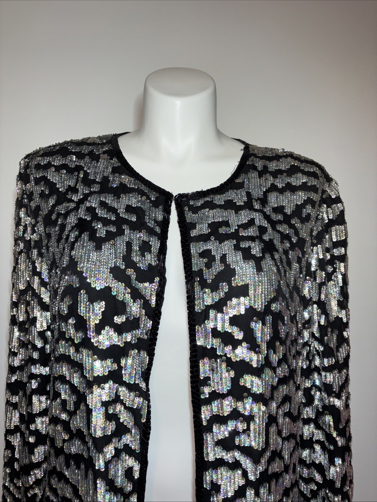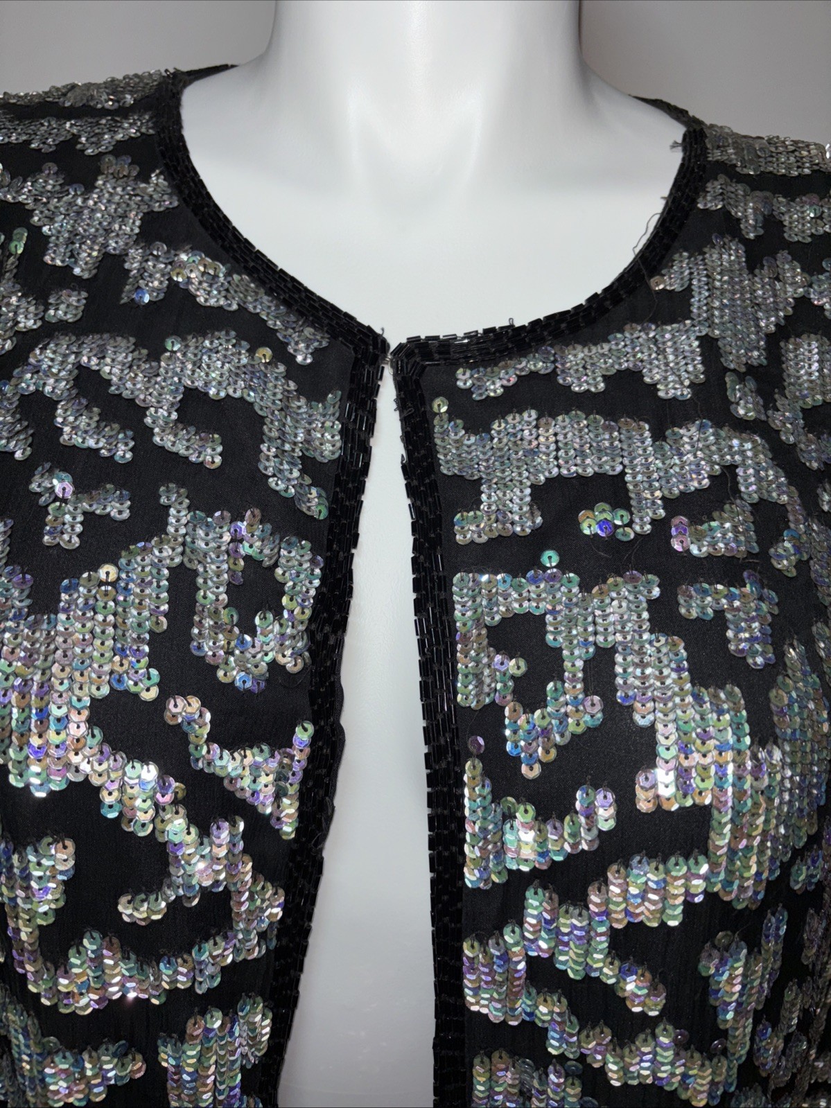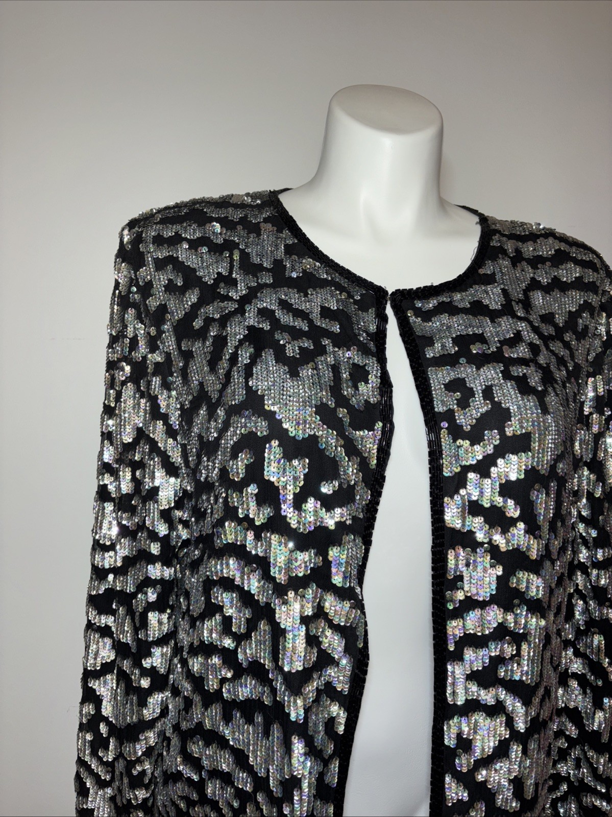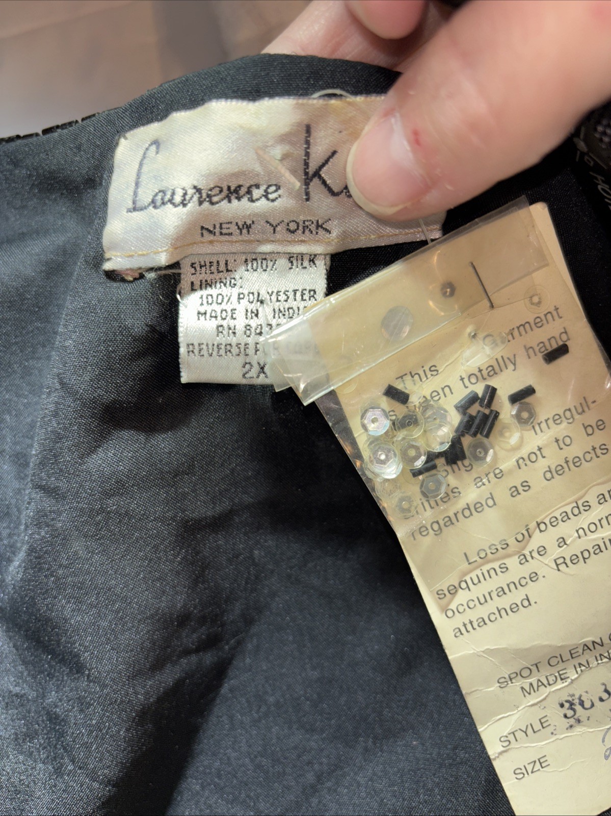 Laurence Kazar New York 100 Silk Sequin Long Jacket NWT 2X Vintage Stunning