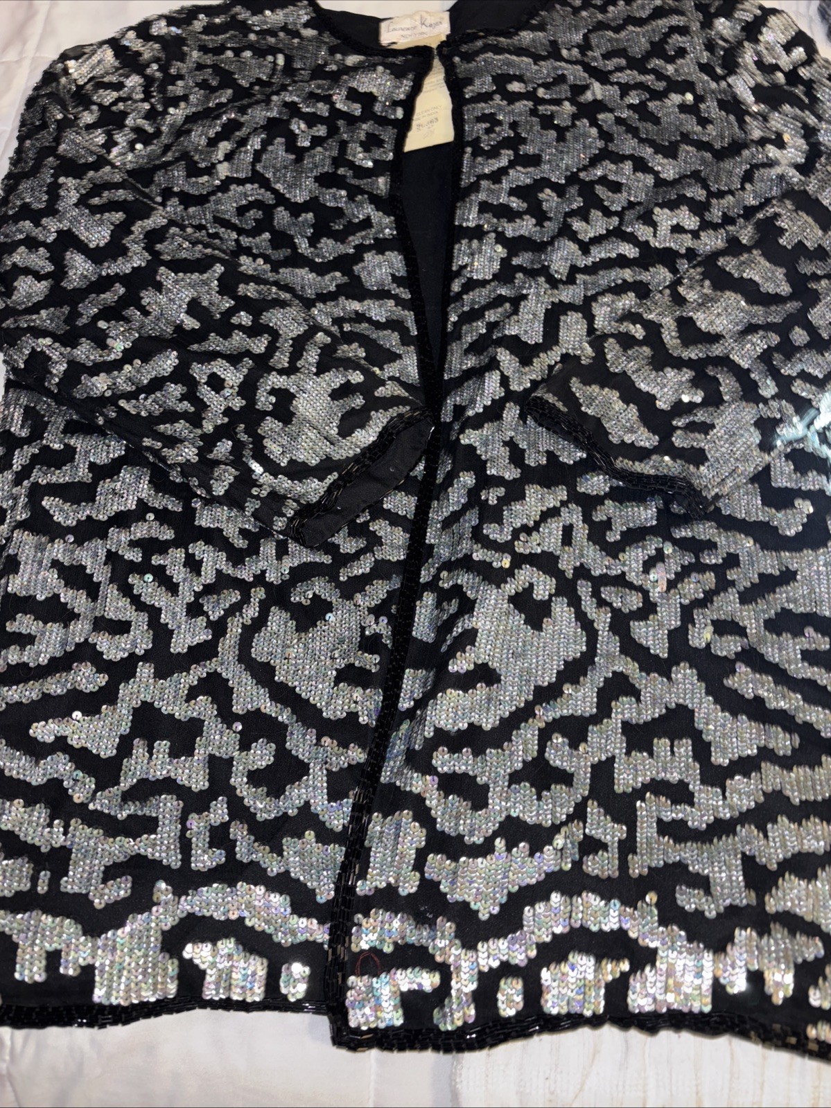 как выглядит Laurence Kazar New York 100 Silk Sequin Long Jacket NWT 2X Vintage Stunning фото