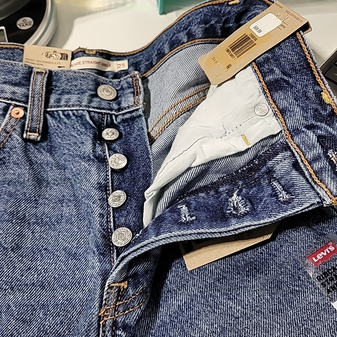 как выглядит Levis Womens Ultra-High Rise Ribcage Straight Jeans - Blue Size 0 25x27 фото