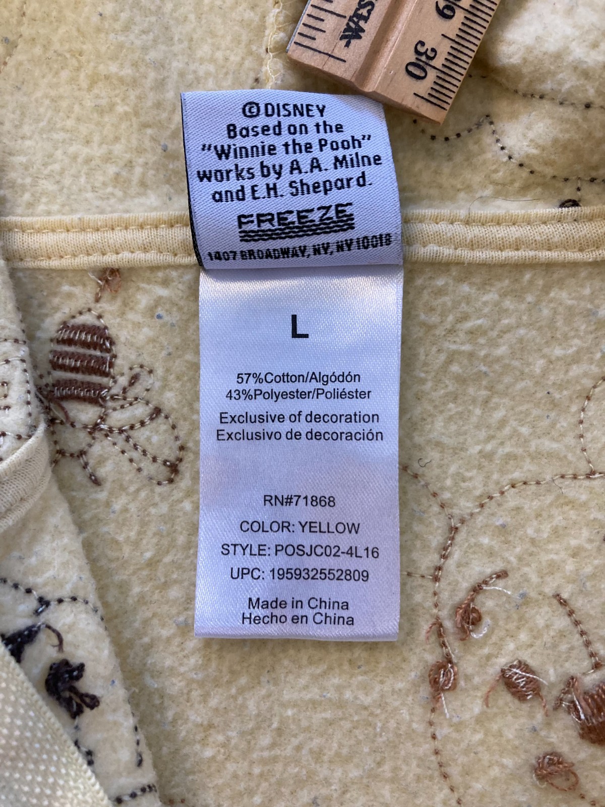 • Winnie the Pooh Hoodie Womens Large Light Yellow Embroidered Full Zip w/ Pockets
