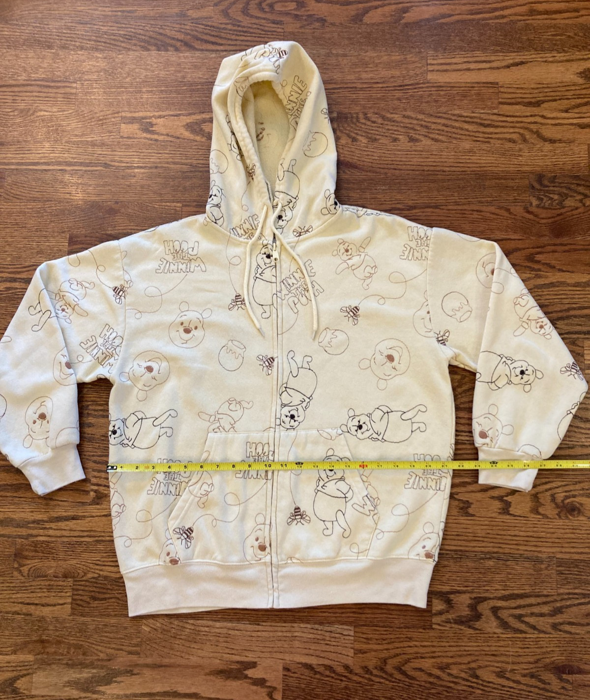 Winnie the Pooh Hoodie Womens Large Light Yellow Embroidered Full Zip w/ Pockets