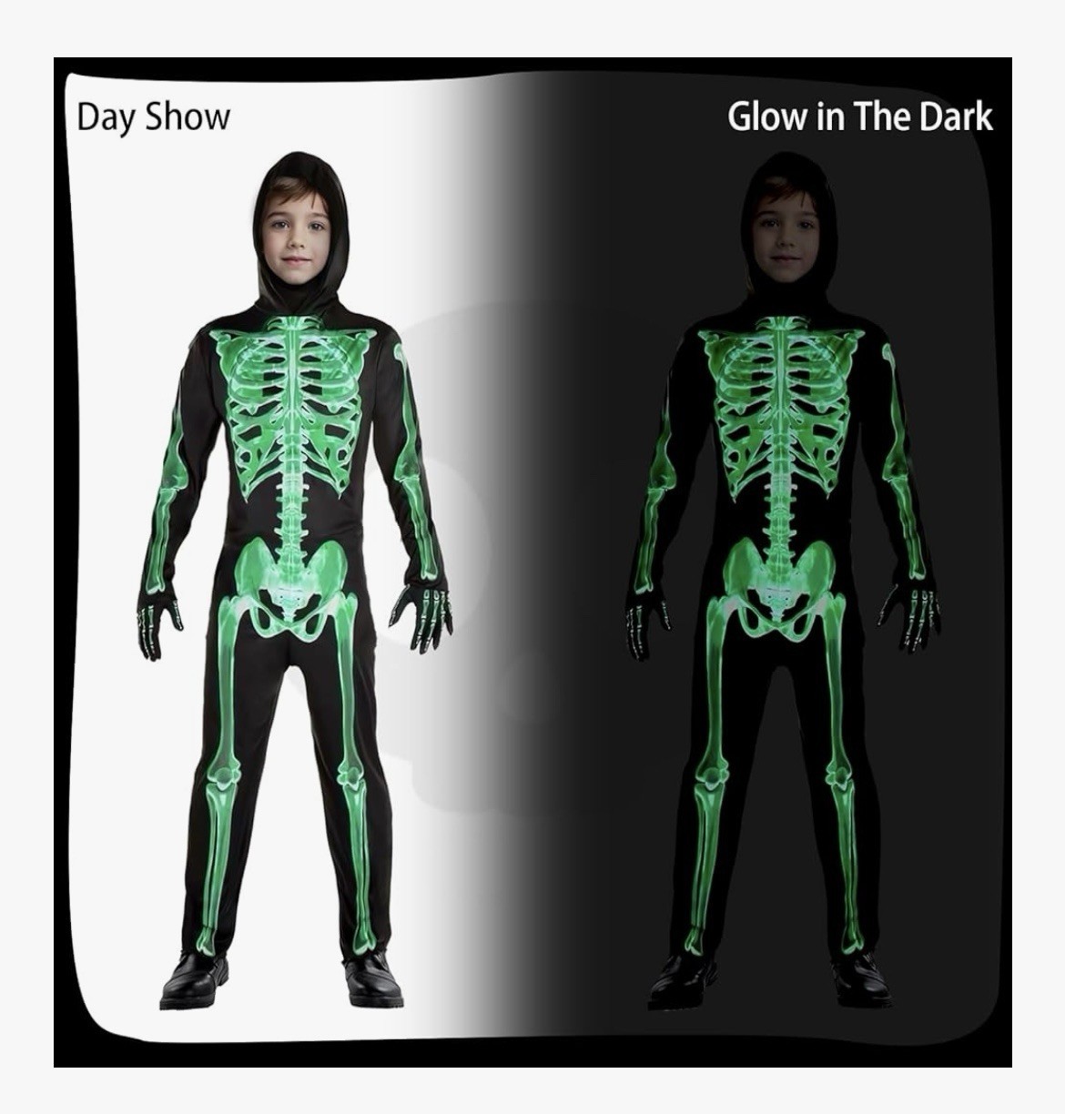 как выглядит Skeleton Halloween Costume Glow In The Dark Child Size Small 4-6 фото